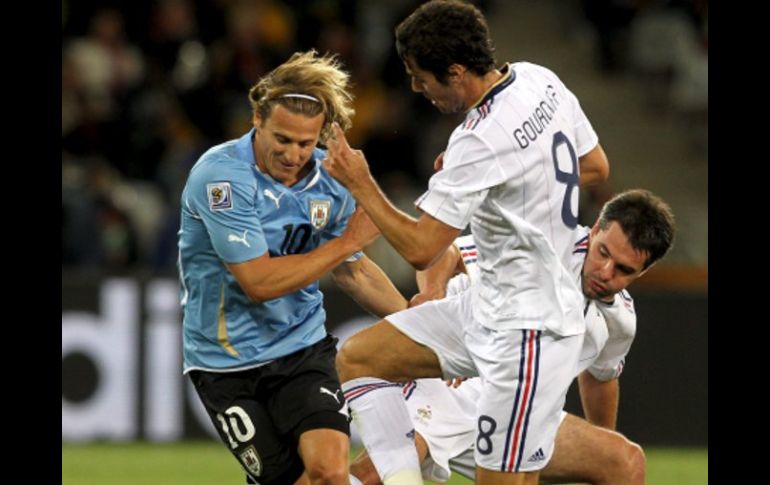 Deportes | Ambos equipos tuvieron oportunidades de gol Uruguay y Francia empatan a cero Este resultado deja a todos parejos en el Grupo A, donde previamente México y Sudáfrica empataron a gol Por: EL INFORMADOR 11 de junio de 2010 - 14:21 hs Diego Forlán intenta evadir la marca de Yohan Gourcoff. EFE / LEA EL MINUTO A MINUTO DE ESTE PARTIDO CIUDAD DEL CABO, SUDÁFRICA (11/JUN/2010).- Sin mucha claridad y trabados en el mediocampo, Uruguay y Francia empataron el viernes sin goles para completar la primera jornada del Mundial. México y Sudáfrica igualaron 1-1 en Johannesburgo en el otro encuentro del Grupo A en la inauguración del torneo. Uruguay jugó con un hombre menos los últimos 20 minutos por la expulsión de Nicolás Lodeiro por una plancha sobre Bacary Sagna. El volante había entrado a la cancha apenas 18 minutos antes y vio dos amarillas. "El partido estaba bien para los dos, no había mucho peligro pero la expulsión nos condicionó bastante", comentó el delantero uruguayo Diego Forlán. Sidney Govou desperdició la ocasión más clara de gol a los siete minutos cuando remató desviado un centro rasante desde la izquierda de Franck Ribery. Ribery se apoderó de la banda izquierda y siempre que tocó la pelota con claridad generó algo de peligro, aunque a medida que transcurrió el encuentro la marca celeste lo fue apagando. Fiel a su estilo, el técnico francés Raymond Domenech alineó a Nicolas Anelka solo en la punta, y el artillero del Chelsea no tuvo ningún carril para llegar al arco defendido por el uruguayo Fernando Muslera. El capitán uruguayo Diego Lugano se encargó exclusivamente de apagar al ``Puma''. La mejor de Uruguay fue un potente remate de Forlán desde el borde del área a los 16 que el arquero francés Hugo Lloris tapó sin mucho problema. Dos minutos después, Muslera se lució al lanzarse para sacar del ángulo un tiro libre de Yoann Gourcuff. El resto del partido transcurrió sin muchas novedades, con una celosa marca de la defensa francesa sobre Forlán y su compañero en el ataque celeste, Luis Suárez. Un remate de lejos de Jeremy Toulalan a los 56, que Muslera tapó sin aprietos, y un balazo desviado de Forlán a los 73 fueron las únicas acciones que elevaron el pulso el resto del partido. Forlán y Suárez lucieron solos y poco auxiliados por el resto del equipo, encadenado atrás para contener la delantera francesa. "Tuvimos un par de situaciones, nos faltó de tres cuartos de cancha enganchar y tocar más", indicó Forlán. El cerrojo a cuatro con Alvaro Pereira, Lugano, Mauricio Victorino y Diego Godín dio resultados ante la presión con la que salieron los galos, siempre apostando a alguna genialidad de Ribery. Conforme se acercó el pitazo final y con la salida obligada de Lodeiro, Uruguay cedió la iniciativa a Francia, que por más que trató no pudo anotar. El áspero encuentro cerró con seis tarjetas amarillas y una roja. Temas FIFA Mundial de Sudáfrica 2010 Selección de Uruguay Selección de Francia Recibe las últimas noticias en tu e-mail Todo lo que necesitas saber para comenzar tu día Registrarse implica aceptar los Términos y Condiciones