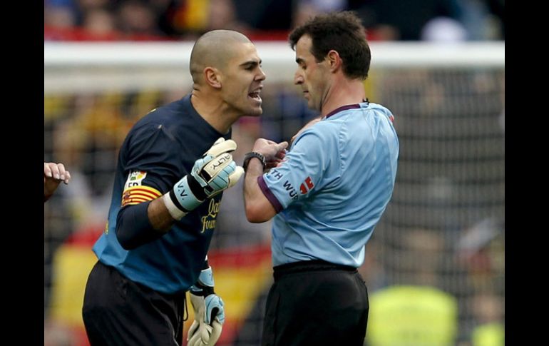 Deportes | El portero del Barcelona fue expulsado al final del partido en el que perdieron 2-1 Valdés, reportado por insultos al árbitro El portero del Barcelona fue expulsado al final del partido en el que perdieron 2-1 ante Real Madrid Por: EFE 2 de marzo de 2013 - 15:06 hs Momento en el que Víctor Valdes reclama de manera airada al árbitro Pérez Lasa. EFE / MADRID, ESPAÑA (02/MAR/2013).- Víctor Valdés, portero del Barcelona, fue expulsado al finalizar el partido ante el Real Madrid por protestar un posible penalti de Sergio Ramos sobre el chileno Alexis Sánchez y, según recoge el acta arbitral, se dirigió al colegiado Miguel Ángel Pérez Lasa "con los brazos en alto" gritando que "se había cagado" y que no tenía "vergüenza". "Una vez acabado el partido y cuando aún nos encontrábamos en el terreno de juego, amonesté al jugador del FC Barcelona Nº1 D. Víctor Valdés Arribas por dirigirse hacia mi con los brazos en alto y voz en grito recriminándome una de mis decisiones. A continuación expulsé a este mismo jugador por encarárseme a escasos centímetros de mi cara diciéndome con voz en grito y de forma repetida: "os habeis cagado, no tienes vergüenza", señala el acta arbitral. "Tras ser expulsado este mismo jugador persistió en su actitud y en los mismos términos diciendo repetidamente: "No tienes vergüenza", teniendo que ser sujetado por los compañeros y el delegado de su equipo. Una vez nos encontrábamos en el túnel de vestuarios este mismo jugador persistió en su actitud y con voz en grito repitió los mismos términos anteriores: "no tienes vergüenza, no tienes vergüenza", añade Pérez Lasa en su descripción de los hechos. Temas Futbol Español Futbol Internacional Barcelona Real Madrid Recibe las últimas noticias en tu e-mail Todo lo que necesitas saber para comenzar tu día Registrarse implica aceptar los Términos y Condiciones