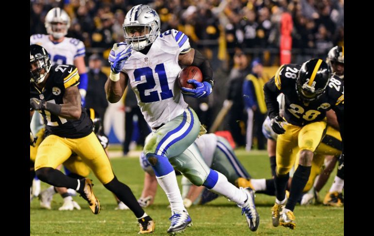 PITTSBURGH, PENSILVANIA (13/NOV/2016).- Ezekiel Elliott y los Vaqueros de Dallas siguieron imparables, al derrotar el domingo 35-30 a los Acereros de Pittsburgh para hilvanar su octava victoria consecutiva.Ni siquiera una jugada de engaño del quarterback Ben Roethlisberger pudo descarrilar al equipo más enrachado de la NFL.Ellliott corrió para 114 yardas y tres touchdowns, incluidos dos en los últimos dos minutos del encuentro. Su otra anotación había llegado en una jugada en que atrapó un pase y se escapó 83 yardas.Dak Prescott se sobrepuso a un balón suelto en los albores del partido y terminó lanzando para 319 yardas y dos anotaciones por Dallas (8-1), que igualó la mejor seguidilla de triunfos en una misma temporada en su historia, gracias a dos novatos que no parecen asustarse en los grandes escenarios.Dez Bryant añadió seis recepciones para 116 yardas, incluida una recepción de 50 yardas que terminó en las diagonales.Roethlisberger pasó para 408 yardas y tres touchdowns por los Acereros (4-5). Antonio Brown atrapó 14 envíos para 154 yardas, incluido un touchdown en un avance de 15 yardas cuando restaban 42 segundos.En esa jugada, Roethlisberger fingió que azotaría el balón y terminó lanzando un pase.Pero los Vaqueros coronaron la siguiente ofensiva con un touchdown de Elliott.