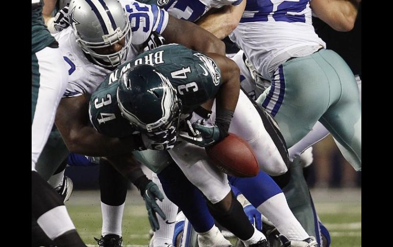 Deportes | Los Vaqueros se impusieron 38-33 a las Águilas Vence Dallas a Filadelfia Los Vaqueros se impusieron 38-33 a las Águilas Por: AP 3 de diciembre de 2012 - 05:23 hs Bryce Brown (Filadelfia) protege el balón durante una jugada en el encuentro ante Dallas. AP / DALLAS, TEXAS (03/DIC/2012).- Tony Romo lanzó tres pases de anotación para romper la marca del equipo del inmortal Troy Aikman -con el numero 166-, y los Vaqueros de Dallas (6-6) se mantuvieron con vida en la lucha por los pléiofs, con una victoria 38-33 sobre las Águilas de Filadelfia (3-9), que hilvanaron su octavo revés. Dallas perdía 27-24, cuando Romo guió una ofensiva de 86 yardas, en la que el receptor Dez Bryant fue clave. Bryant anotó dos veces y DeMarco Murray tuvo un touchdown. Anotación por cuartos: Filadelfia 7 10 7 9 -- 33 Dallas 0 10 7 21 - 38 Temas NFL Futbol Americano Vaqueros de Dallas Águilas de Filadelfia Recibe las últimas noticias en tu e-mail Todo lo que necesitas saber para comenzar tu día Registrarse implica aceptar los Términos y Condiciones