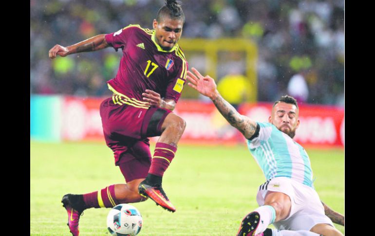 MÉRIDA, VENEZUELA (07/SEP/2016).- Sin ideas por la ausencia de Lionel Messi, Argentina necesitó de un gol agónico de Nicolás Otamendi para empatar ayer 2-2 con el colero Venezuela, en la octava fecha de la eliminatoria sudamericana del Mundial de 2018 en Rusia.Juan Pablo Añor abrió el marcador a los 35’ por la Selección Vinotinto con un gol de fantasía, en el que gambeteó a tres rivales al borde del área y superó al portero Sergio Romero con un bombazo de zurda al ángulo.Josef Martínez hizo el segundo, también de buena manufactura, a los 53’, cuando sacó un derechazo desde el centro del área que se metió rasante y pegado al poste izquierdo.Con este resultado, Argentina, que venía de superar 1-0 a Uruguay la semana pasada, quedó segunda en la clasificación con 15 puntos, y Venezuela quedó con dos.La Albiceleste sintió la ausencia de Messi, autor del gol ante Uruguay y quien se perdió el encuentro por lesión.En los minutos finales, Argentina mejoró y el delantero Pratto (58’), aprovechó un descuido de la zaga rival, se filtró entre dos defensores y puso el 2-1.Otamendi, defensa del Manchester City, emparejó el marcador (83’) al rematar un centro al área luego de un saque de esquina.