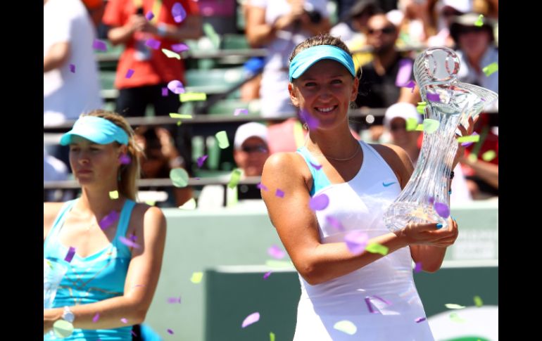 Deportes | La tenista bielorrusa derrota en dos parciales a la rusa Victoria Azarenka resulta mucha pieza para Maria Sharapova La tenista bielorrusa derrota en dos parciales a la rusa Por: EFE 3 de abril de 2011 - 02:34 hs • La tenista bielorrusa, Victoria Azarenka (der.), muestra su trofeo de campeona del Másters de Miami; a su lado Maria Shaparapova. AFP / MIAMI, FLORIDA (02/ABR/2011).- La bielorrusa Victoria Azarenka se impuso a la rusa Maria Sharapova por 6-1 y 6-4, en la final del torneo de Miami, donde logró el título por segunda vez después de dos años. Azarenka se impuso en una hora y 46 minutos, mostrando un tenis mucho más sólido que la ex número uno del mundo, a quien apabulló para apuntarse el sexto título de su carrera, y el primero esta temporada. La jugadora bielorrusa ganó este torneo en 2009, al derrotar en la final a la estadounidense Serena Williams, en esta edición había tenido un difícil comienzo, con victorias en tres sets en sus tres primeros encuentros, incluyendo el que ganó a la eslovaca Dominika Cibulkova cuando perdía por 6-3 y 3-1. Pero en las rondas finales, Vica destapó su mejor tenis para ir a más y ganar a la belga Kim Clijsters (6-3 y 6-3) en cuartos, y a la rusa Vera Zvonareva (6-0 y 6-3) en la penúltima ronda. Finalista en Miami en 2005 (perdió con Kim Clijsters) y 2006 (con Svetlana Kuznetsova), Sharapova atacó con fuerza en los intercambios pero le faltó precisión para desbordar a su rival en el fondo de la pista. El primer juego duró 10 minutos, y en éste Azarenka ya demostró que estaba dispuesta a aguantar todo lo que Maria le enviase. La rusa sólo maquilló un resultado que podía haber sido de escándalo al final del segundo set (6-1 y 4-0), levantó dos bolas de partido. Ambas se habían enfrentado en cuatro ocasiones con 2-2 hasta ayer, y Azarenka había ganado el último duelo, en la final de Stanford el año pasado. Sharapova tendrá el consuelo de ascender al noveno puesto de la clasificación mundial, mientras que Azarenka pasará al sexto. Resultado de la final femenil Jugadora set 1 2 Victoria Azarenka 6 6 Maria Sharapova 1 4 Temas Tenis Torneo WTA María Sharapova Victoria Azarenka Recibe las últimas noticias en tu e-mail Todo lo que necesitas saber para comenzar tu día Registrarse implica aceptar los Términos y Condiciones