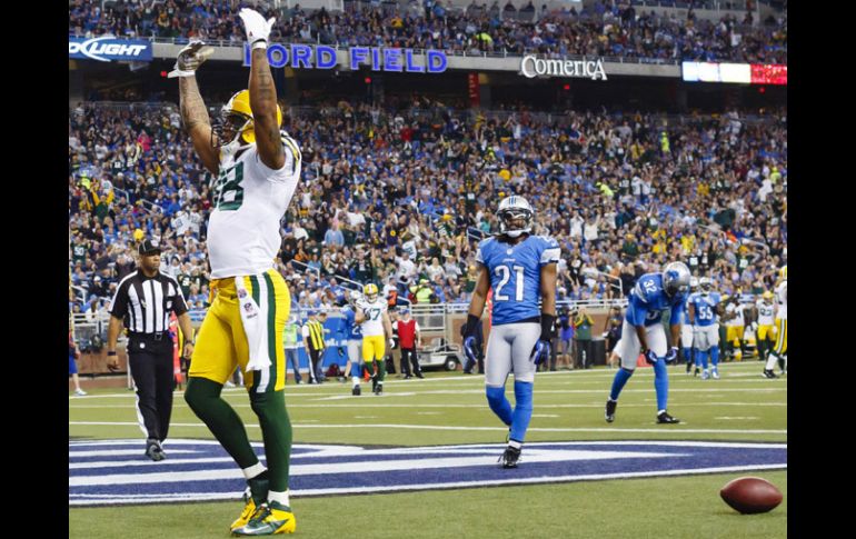 Deportes | Rodgers guía a su equipo a un triunfo de 24-20 sobre Detroit Victoria de los Empacadores Rodgers guía a su equipo a un triunfo de 24-20 sobre Detroit Por: AP 18 de noviembre de 2012 - 16:25 hs Finley festeja en la diagonales luego de conseguir una anotación para Green Bay. AP / DETROIT, MICHIGAN (18/NOV/2012).- Aaron Rodgers hizo dos pases para touchdown, incluyendo uno de 22 yardas a Randall Cobb a 1:55 del final, y los Empacadores de Green Bay vencieron el domingo a los Leones de Detroit 24-20. Mason Crosby pateó un gol de campo de 39 yardas con 19 segundos por jugarse tras fallar dos previo en el partido. Matthew Stafford no consiguió dar la ventaja a los Leones en ninguna de sus dos últimas posesiones, en un partido que quisiera olvidar. Stafford fue interceptado en dos ocasiones, una de ellas llevó a un regreso de 72 yardas para touchdown por el safety M.D. Jennings en el tercer período, y perdió un fumble. Green Bay (7-3) ha ganado cinco seguidos, mientras que Detroit (4-6) lleva dos derrotas en fila. Temas NFL Futbol Americano Leones de Detroit Empacadores de Green Bay Lee También ¿Dónde ver EN VIVO el partido amistoso México vs Ecuador? Los Chiefs juegan como en antaño Sensei rojinegro Futbol hoy 13 de octubre de 2025: ¿Dónde ver los partidos en vivo? Recibe las últimas noticias en tu e-mail Todo lo que necesitas saber para comenzar tu día Registrarse implica aceptar los Términos y Condiciones