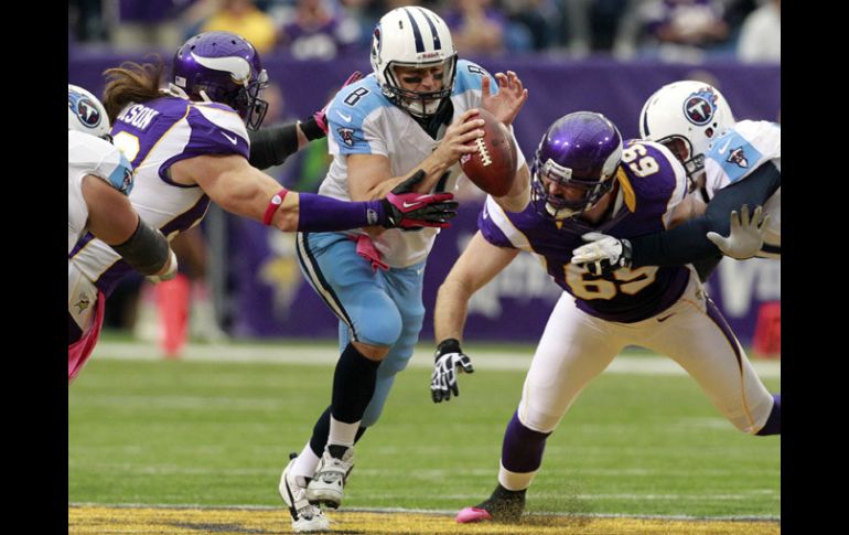 Deportes | Minnesota vence 30-7 a los Titanes de Tennessee en casa Vikingos se queda con el triunfo Minnesota vence 30-7 a los Titanes de Tennessee en casa Por: EFE 7 de octubre de 2012 - 19:25 hs Matt Hasselbeck (centro) no pudo con la defensiva de los Vikingos. AP / MINNEAPOLIS, MINNESOTA (07/OCT/2012).- Percy Harvin consiguió dos anotaciones, una por aire y otra por tierra, para darle a los Vikingos de Minnesota una victoria por 30-7 sobre los Titanes de Tennessee. Harvin capturó ocho pases para 108 yardas para los Vikingos (4-1), que se hicieron de tres triunfos consecutivos y comparten con los Osos de Chicago el primer lugar de la División Norte de la Conferencia Nacional (NFC). El mariscal de campo de Minnesota, Christian Ponder, lanzó sus primeras dos interceptaciones después de 143 intentos en lo que va de la temporada sin permitirlo. Ponder terminó con 25 de 35 pases para 258 yardas y dos pases de 'touchdown', que ayudaron a la victoria de los Vikingos, convertidos en revelación de la temporada. El corredor estelar Adrian Peterson logró 88 yardas en 17 acarreos, siendo otro de los factores en la victoria del equipo de Minnesota. El mariscal de los Titanes (1-4), el veterano Matt Hasselbeck, iniciando en lugar del lesionado Jake Locker, completó 26 de 43 pases para 200 yardas, un pase de 'touchdown' y una interceptación, sin que pudiese ser factor ganador para su equipo. Temas NFL Futbol Americano Titanes de Tennessee Vikingos de Minnesota Lee También ¿Dónde ver EN VIVO el partido amistoso México vs Ecuador? La NFL suspende a Brian Branch por golpear a jugador de Chiefs NFL: Resultados del Monday Night Football Futbol hoy 14 de octubre de 2025: ¿Dónde ver los partidos en vivo? Recibe las últimas noticias en tu e-mail Todo lo que necesitas saber para comenzar tu día Registrarse implica aceptar los Términos y Condiciones
