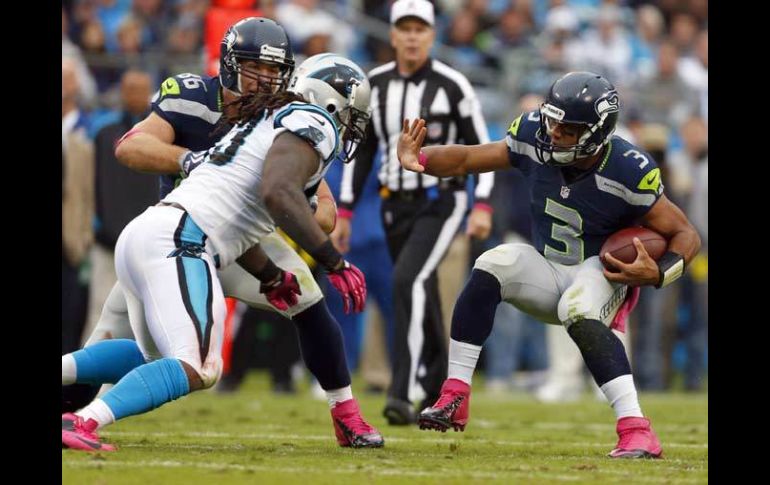 Deportes | Los Halcones Marinos vencen 16-12 a las Panteras de Carolina Wilson guía el triunfo de Seattle Los Halcones Marinos vencen 16-12 a las Panteras de Carolina Por: AP 7 de octubre de 2012 - 19:33 hs Russell Wilson (3) ha llevado el peso de la ofensiva de Seattle. AP / CHARLOTTE, CAROLINA DEL NORTE (07/OCT/2012).- Russell Wilson lanzó un pase de anotación de 13 yardas a Golden Tate en los últimos momentos del tercer período para llevar el domingo a los Halcones Marinos de Seattle al triunfo por 16-12 ante las Panteras de Carolina. Wilson pudo hacer a un lado dos intercepciones en el tercer cuarto, incluida una que fue touchdown y superó a Cam Newton en un día muy complicado para la ofensiva de Carolina. Wilson lanzó para 221 yardas, en tanto que Marshawn Lynch corrió para 85 yardas por los Halcones Marinos (3-2). Newton avanzó 141 yardas por aire al completar 12 de 29 pases en un partido en que los Panthers consiguieron sólo 190 yardas. Su único touchdown fue la intercepción que Captain Munnerlyn devolvió 33 yardas hasta la zona de anotación al comienzo del tercer período. Carolina empezó con gran entusiasmo la campaña por el regreso de Newton para que encabezara a una ofensiva muy eficaz, pero las Panteras (1-4) chocaron toda la tarde contra la dura defensiva de los Halcones Marinos. Temas NFL Futbol Americano Bills de Buffalo 49ers de San Francisco Recibe las últimas noticias en tu e-mail Todo lo que necesitas saber para comenzar tu día Registrarse implica aceptar los Términos y Condiciones