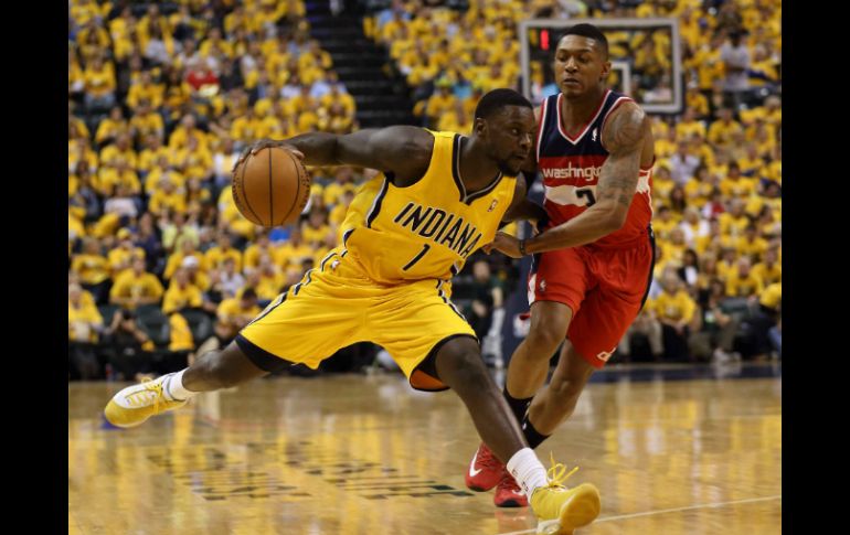 Deportes | Los Wizards de Washington vencen 102-96 a los Pacers de Indiana Wizards pegan primero en serie ante Pacers Los Wizards de Washington vencen 102-96 a los Pacers de Indiana Por: AP 5 de mayo de 2014 - 20:50 hs Bradley Beal quien anotó 25 puntos a los Wizards se disputa el balón con Lance Stephenson de los Pacers. EFE / INDIANÁPOLIS, ESTADOS UNIDOS (05/MAY/2014).- Bradley Beal anotó 25 puntos, incluidos 14 en el cuarto periodo, para que los Wizards de Washington vencieran el lunes 102-96 a los Pacers de Indiana y tomaran ventaja en el comienzo de su serie correspondiente a la segunda ronda de la postemporada. Trevor Ariza aportó 22 unidades y los Wizards ganaron un partido de la segunda ronda de los playoffs por primera vez desde 1982. Washington tiene una foja de 4-0 en partidos como visitante durante esta postemporada. Los Wizards pusieron fin a una racha de 12 derrotas consecutivas ante Indiana, la cual se remontaba al 18 de abril de 2007. El brasileño Nené sumó 15 puntos, seis rebotes, dos asistencias y cuatro faltas en 32 minutos, por los Wizards. Washington estuvo en desventaja en una sola ocasión durante el encuentro, por 31-30 y tomó el control con una ofensiva de 17-6 para cerrar la primera mitad, lo que puso el marcador en 56-43. Indiana no pudo acercarse a menos de cinco puntos en los dos últimos cuartos. Paul George y George Hill anotaron 18 puntos cada uno por Indiana. El argentino Luis Scola jugó 27 minutos, con 12 puntos, cinco rebotes y cinco faltas. Temas NBA Basquetbol Washington Wizards Indiana Pacers Recibe las últimas noticias en tu e-mail Todo lo que necesitas saber para comenzar tu día Registrarse implica aceptar los Términos y Condiciones