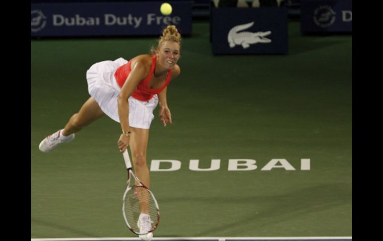 Deportes | La ex número uno del mundo pasó a los cuartos de final al vencer a Ayumi Morita Wozniacki avanza en Dubai La ex número uno del mundo consiguió su pase a los cuartos de final al vencer a Ayumi Morita Por: EL INFORMADOR 17 de febrero de 2011 - 13:40 hs La tenista danesa Caroline Wozniacki devuelve la pelota en el partido de la tercera ronda en Dubai. AP / DUBÁI, EMIRATOS ÁRABAES UNIDOS (17/FEB/2011).- La danesa Caroline Wozniacki, primera cabeza de serie, se clasificó este jueves para los cuartos de final del torneo de tenis femenino de Dubai, donde la segunda y la tercera favoritas, la rusa Vera Zvonareva y la italiana Francesca Schiavone, quedaron eliminadas. Wozniacki no tuvo ningún problema para arrollar con un rápido 6-1 y 6-0 a la japonesa Ayumi Morita, confirmándose como principal aspirante a levantar el trofeo en la ciudad emiratí. Zvonareva se despidió ante su compatriota Alisa Kleybanova (N.15) al perder 6-3 y 6-2, y Schiavone cayó ante otra rusa, Svetlana Kuznetsova (N.16), que remontó para terminar ganando 1-6, 6-0 y 7-5. Entre el resto de favoritas, la australiana Samantha Stosur (N.4) sí que cumplió, imponiéndose por 6-3 y 6-4 a la suiza Patty Schnyder. El torneo se disputa sobre superficie dura y reparte 2,05 millones de dólares en premios (1,5 millones de euros). -- Torneo WTA de Dubai - Individuales - Tercera ronda: Caroline Wozniacki (DEN/N.1) derrotó a Ayumi Morita (JPN) 6-1, 6-0 Shahar Peer (ISR/N.9) a Yanina Wickmayer (BEL) 3-6, 6-4, 6-1 Samantha Stosur (AUS/N.4) a Patty Schnyder (SUI) 6-3, 6-4 Jelena Jankovic (SRB/N.6) a Kaia Kanepi (EST/N.12) 2-6, 6-3, 7-5 Agnieszka Radwanska (POL/N.8) a Marion Bartoli (FRA/N.10) 6-3, 6-2 Svetlana Kuznetsova (RUS/N.16) a Francesca Schiavone (ITA/N.3) 1-6, 6-0, 7-5 Flavia Pennetta (ITA/N.11) a Victoria Azarenka (BLR/N.7) 6-3, 6-7 (2/7), 6-4 Alisa Kleybanova (RUS/N.15) a Vera Zvonareva (RUS/N.2) 6-3, 6-2 Temas Tenis Torneo WTA Torneo de Dubai Caroline Wozniacki Lee También Novak Djokovic avanza a semifinales del Masters de Shanghái Sabalenka mantiene su racha ganadora No solo Puma, estas son las colecciones de tenis para Día de Muertos 2025 (FOTOS) Calendario de partidos de la J13 del Apertura 2025 Recibe las últimas noticias en tu e-mail Todo lo que necesitas saber para comenzar tu día Registrarse implica aceptar los Términos y Condiciones