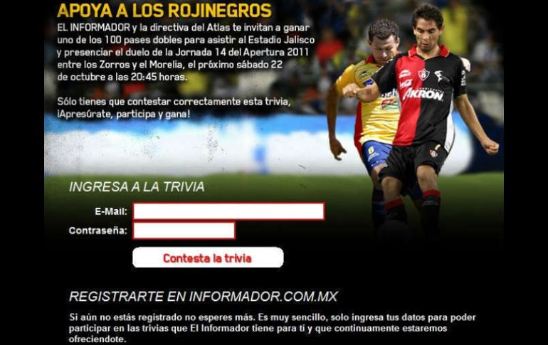Deportes | Este 21 de octubre de 2011 en el Estadio Jalisco, a las 20:10 horas es el partido Ya tenemos ganadores para el Atlas vs. Monarcas Este 21 de octubre de 2011 en el Estadio Jalisco, a las 20:10 horas es el partido Por: EL INFORMADOR 21 de octubre de 2011 - 11:24 hs La trivia se publicó este jueves 20 de octubre. ESPECIAL / GUADALAJARA, JALISCO (07/OCT/2011).- Gracias por participar en nuestra trivia para asistir al duelo de la Jornada 14 del Apertura 2011 entre los Zorros del Atlas y Monarcas Morelia el próximo sábado 22 de octubre a las 20:45 horas, en el Estadio Jalisco. Los ganadores deberán recoger su pase doble con una copia de identificación oficial en las instalaciones de EL INFORMADOR, ubicadas en Independencia #300, zona Centro, a partir de este momento y hasta las 18:00 horas de este sábado. Te invitamos a que sigas pendiente de nuestras promociones. A continuación la lista de ganadores quienes ya fueron notificados vía correo electrónico. 1. Michel Noel Lira De La Torre 2. Diego Enrique Cordero Baltazar 3. Jesús Eduardo Martínez García 4. Nathalie Soledad Cruz Frías 5. Ricardo Rames Haro Alcocer 6. Carlos Antonio Linares Vázquez 7. Francisco Xavier Navarro González 8. Oscar Escobar 9. Alejandro Pantoja Lozano 10. Alfonso Magaña Pozos 11. Luis Arturo Mendoza Piña 12. Gerardo Ramón De La Torre Ávila 13. René Reynoso 14. Luis Alfonso Rodríguez 15. Manuel Alejandro Parra Enciso 16. Rodolfo Moreno Hernández 17. Edgar Ulises Salcedo Bracamontes 18. Erica Jazmín Nuño Márquez 19. Oscar Andrés Morales Rodríguez 20. Bertha Garibay Román 21. Luis Mario Salazar Zayas 22. Emmanuel Rivera 23. Alberto Oswaldo Zavala Jiménez 24. Hugo Zermeño Gutiérrez 25. Héctor Alberto Romero Gamboa 26. Carlos Alberto Bravo Ramírez 27. Christopher Galindo 28. Salvador Gutiérrez M 29. Rafael Ortiz Vargas 30. Sergio Suárez Vieyra 31. Marco Antonio Cuevas Estrada 32. Miguel Ángel Ramírez Alcalá 33. Rosaura Fernandez Galindo 34. Jerónimo Albarran Anthony 35. José Ramón Pérez Ayala 36. Salvador Frutos Cárdenas 37. León Felipe Hernández Ruiz 38. José Ricardo Vargas Gudiño 39. Fernando Pérez Anaya 40. Marisela Herrera 41. José Domingo Morales Barajas 42. Edgar Saldaña 43. Javier Alfonso 44. Ernesto González Guillen 45. Jonathan Hernández Gutiérrez 46. Ramón Antonio Solís S 47. Fernando Flores Márquez 48. Luis Vicente Casillas Figueroa 49. Alberto Reveles Vázquez 50. Felipe De Jesús Sánchez Rivera 51. Erika Janet Figueroa Romero 52. Gustavo Padilla Magallón 53. Gustavo Padilla 54. José Juan Martínez Jiménez 55. Joanna Yáñez Cisneros 56. Violeta Guadalupe Acosta Reyes 57. Héctor Macías 58. Paulo González Hernández 59. Jorge Adrian Zamora Juárez 60. Oscar Plata Santoyo 61. José De Jesús Morales Romero 62. Jorge Vastardis Jiménez 63. Silvia Elena Quezada Carrillo 64. Oscar Joel Uribe Pérez 65. Carlos Alberto Arévalo Olvera 66. Álvaro Izaguirre Serrano 67. Javier Rubio 68. José Gabriel Lima Covarrubias 69. Nancy Guadalupe Rodríguez Rubio 70. Luis Alberto Soto Acosta 71. Carlos Juárez Flores 72. Rubén Darío García Solano 73. Ismael Barajas Dolores 74. Juan Antonio Villalpando Chávez 75. Darian Eleazar Cerqueda Martínez 76. José Luis Guerrero Gutiérrez 77. Diego Miguel Salinas Varo 78. José Luis Guerrero Gutiérrez 79. David 80. Luis Guillermo Villa Pantoja 81. Luis Alfonso Ramírez Fernández 82. Claudia Alejandra Delgado Franco 83. Néstor José Flores Hernández 84. Salvador 85. Jose Francisco Resendiz Mendoza 86. Roberto Jonathan Rodriguez Díaz 87. Raúl Villalobos Carlos 88. Beatriz Andrea Lasso Bautista 89. Eleazar Cerqueda Pérez 90. Juan Carlos Silas Casillas 91. Néstor José Flores Hernández 92. Edgar Gamiño Carranza 93. Alma Gricelda Yáñez Cisneros 94. Jesús Martín Del Campo 95. Salvador Vera Cruz 96. Brian Ulises Pérez Elizondo 97. Jaime Pérez Gómez 98. José Julián Pérez García 99. Gisela Peña Romano Medina 100. Gerardo Nuño Temas Atlas Futbol Mexicano Monarcas Morelia Torneo Apertura 2011 Lee También Futbol hoy 10 de octubre de 2025: ¿Dónde ver los partidos en vivo? Atlas aprovecha la pausa para recuperar elementos clave México listo para un nuevo desafío en el Mundial Sub-17 Femenil Todas las selecciones que han calificado al Mundial 2026 hasta hoy Recibe las últimas noticias en tu e-mail Todo lo que necesitas saber para comenzar tu día Registrarse implica aceptar los Términos y Condiciones