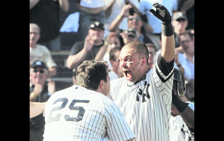 Deportes | Aprovechan que Tampa Bay perdió Yankees se reencuentra con un oportuno triunfo Con una gran labor de Swisher los Yankees ganaron a Baltimore, y cortaron una racha de dos derrotas seguidas Por: EL INFORMADOR 9 de septiembre de 2010 - 05:19 hs Nick Swisher (der.) celebra con Mark Teixeira luego de conectar un jonrón en la novena entrada. AP / NUEVA YORK, N.Y. (09/SEP/2010).- El guardabosques Nick Swisher se voló la barda con un compañero en los senderos en el noveno episodio y dio a los Yankees de Nueva York un triunfo por 3-2 sobre los Orioles de Baltimore. Los Yankees consiguieron la victoria aun cuando estuvieron sin su receptor puertorriqueño Jorge Posada, quien de acuerdo con el piloto Joe Girardi tuvo síntomas de conmoción el martes por la noche después de haber recibido un golpe ante un batazo de foul. Los Yankees regresaron a la senda del triunfo después de haber sumado dos derrotas consecutivas y se mantienen al frente de la División Este e la Americana, con los Rays de Tampa Bay pisándoles los talones y que ayer perdieron ante Boston. El triunfo fue para el cerrador Joba Chamberlain (3-4) en un episodio, ponchando a dos. Filadelfia está enrachado El primera base Ryan Howard pegó jonrón y remolcó seis carreras para los Filis de Filadelfia, que vencieron 10-6 a los Marlines de la Florida y se mantienen liderando su división. Una noche antes los Filis se apoderaron de la División Este de la Liga Nacional, y ayer confirmaron su posición con su tercer triunfo seguido para mantener su ventaja de un juego sobre los Bravos de Atlanta, que anoche vencieron 9-3 a los Piratas de Pittsburgh. Resultados de ayer: Resultados de ayer: Liga Nacional Houston 4 Cachorros 0 Atlanta 9 Pittsburgh 3 San Luis 1 Milwaukee 8 Mets NY 3 Washington 2 Liga Americana Baltimore 2 Yanquis NY 3 Texas 8 Toronto 1 Tampa Bay 5 Boston 11 Medias Blancas 1 Detroit 5 Temas Beisbol MLB Yankees de Nueva York Lee También El juego por el que Ohtani hizo recordar al histórico Babe Ruth Marineros vencen a Azulejos y están a un triunfo de su primera Serie Mundial Charros de Jalisco remonta y vence a Guasave con una gran noche de Bligh Madris Ohtani impulsa a los Dodgers a la Serie Mundial Recibe las últimas noticias en tu e-mail Todo lo que necesitas saber para comenzar tu día Registrarse implica aceptar los Términos y Condiciones