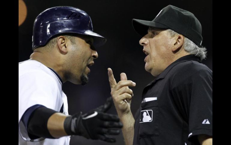 Deportes | Esto debido a que el catcher venezolano tocó a un umpire Yorvit Torrealba queda suspendido por tres partidos Torrealba fue expulsado en la novena entrada del encuentro del lunes, en el que su equipo cayó como local ante los Azulejos Por: AP 16 de junio de 2010 - 16:22 hs El catcher venezolano Yorvit Torrealba de los Padres de San Diego (izq.), discute con el umpire. REUTERS / NUEVA YORK, ESTADOS UNIDOS (16/JUN/2010).- El catcher venezolano Yorvit Torrealba de los Padres de San Diego ha sido suspendido tres partidos por tocar a un umpire. Torrealba fue expulsado en la novena entrada del encuentro del lunes _en que su equipo cayó como local ante los Azulejos, por discutir con el umpire Larry Vanover después de que este cantó un tercer strike. También fue multado con una cantidad cuyo monto no fue revelado. Las Grandes Ligas anunciaron el miércoles que su suspensión comenzaría esa tarde en el partido frente a Toronto a menos que apelara. Torrealba también se perdería partidos el viernes y el sábado en San Diego frente a Baltimore. Está bateando para .277 en 32 juegos, dividiéndose el tiempo de juego con Nick Hundley. Temas Beisbol MLB Padres de San Diego Lee También Dónde ver EN VIVO los juegos de MLB, HOY 13 de octubre Revelan el número de personas no localizadas tras lluvias "atípicas" Charros de Jalisco busca redondear el año Duelos de poder en el diamante: la ruta hacia la Serie Mundial 2025 Recibe las últimas noticias en tu e-mail Todo lo que necesitas saber para comenzar tu día Registrarse implica aceptar los Términos y Condiciones
