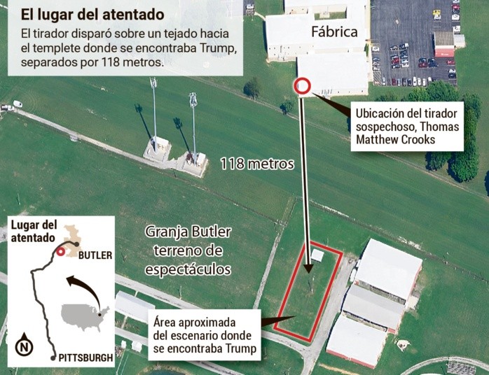 El candidato republicano a la presidencia de Estados Unidos, Donald Trump, sobrevivió a un atentado mientras celebraba un evento de campaña en Butler, Pensilvania, ayer por la tarde. El incidente ocurrió poco menos de diez minutos después de que iniciara el evento, cuando se escucharon disparos. Trump se lanzó al suelo, sujetándose la oreja derecha, mientras se escuchaban los gritos de los asistentes. Los agentes del Servicio Secreto que lo acompañaban lo rodearon de inmediato para neutralizar la amenaza.El atacante, identificado horas después por el FBI como Thomas Matthew Crooks, de 20 años, murió en el lugar tras ser alcanzado por las balas de uno de los francotiradores desplegados en el operativo de seguridad.Una vez confirmado que Trump estaba fuera de peligro, se levantó del suelo rodeado por sus guardaespaldas. Se abrió paso entre ellos para dirigirse a sus simpatizantes, levantando el puño derecho en señal de firmeza. Fue retirado del lugar en medio de aplausos y subió a un vehículo que lo trasladó a un hospital.Anthony Guglielmi, portavoz del Servicio Secreto, declaró: “El 13 de julio se produjo un incidente en un mitin de Trump en Pensilvania. La dependencia ha implementado medidas de protección y el expresidente está a salvo. Ahora se trata de una investigación activa de la corporación y se publicará más información cuando esté disponible”.En el ataque, uno de los simpatizantes de Trump falleció y dos más fueron trasladados al hospital en estado crítico.Horas más tarde, Donald Trump emitió un comunicado agradeciendo al Servicio Secreto por su “pronta respuesta” y expresando sus condolencias a la familia de la víctima. El republicano indicó que resultó herido por “una bala que atravesó la parte superior de mi oreja derecha” y que supo que algo andaba mal cuando sintió la bala “atravesar la piel”.Por la noche, el departamento de policía de Butler y un representante del FBI ofrecieron una rueda de prensa en la que confirmaron que el hecho está siendo investigado “como un intento de asesinato contra el expresidente Donald Trump”.Kevin Rojek, agente especial del FBI, aseguró que “están trabajando incansablemente” para determinar el motivo detrás del atentado y pidió a los ciudadanos que compartan cualquier información con las autoridades, así como videos e imágenes del mitin.Por su parte, Donald Trump regresó a Nueva York anoche y continúa preparándose para la convención republicana que se celebrará del 15 al 18 de julio en donde se confirmará su candidatura a la presidencia.Hay un antes y después para el apacible pueblo agrícola de Butler. De ser una humilde localidad de clase media baja en Pensilvania, a convertirse en el centro de atención mundial para todas las noticias. La razón se resume en cinco palabras: El atentado contra Donald Trump.El mitin del sábado del republicano, en el que todas las miradas estaban puestas en si el expresidente desvelaría finalmente quién era su elegido para la vicepresidencia si regresa a la Casa Blanca, se celebraba en una pequeña localidad de Pensilvania: Butler, famoso por su feria agrícola anual.Condado cercano a la frontera con el Estado de Ohio, es predominantemente rural y conformado esencialmente por familias blancas de clase trabajadora, desilusionada con la actual política económica norteamericana.Justo el tipo de lugar donde el discurso incendiario de Donald Trump funciona mejor. En los escasos diez minutos que duró el mitin antes del atentado, el republicano se había dedicado a criticar duramente a los villanos favoritos de sus votantes: Los migrantes.“Vamos a tener un buen sábado a y a disfrutar, porque la semana que viene voy a ser nominado oficialmente”, mencionó Trump apenas unos instantes previos al suceso.Añadió inmediatamente: “La era con menor inmigración de la historia de nuestro país va a comenzar muy pronto (...) Los voy a deportar a todos. Probablemente sean 20 millones de personas, entre criminales peligrosos y narcotraficantes que no deberían estar aquí. Miren en qué han convertido nuestro país”.Tras esto, se escucharon los disparos, lanzados por un tirador identificado como Thomas Matthew Crooks. La mirada atónita de los asistentes pasó de incredulidad a euforia cuando se descubrió que Trump se encontraba con vida. Entre las porras para el republicano, también hubo seguidores del político que lanzaron gritos e insultos a los otros villanos preferidos de Trump: Los medios de comunicación.Así como para Butler, para los asistentes y posibles votantes en pro de Trump el evento marca un antes y un después en la campaña, pues ahora no dudan que vencerá en las elecciones del próximo noviembre.“Ha sobrevivido porque es un héroe, nuestro héroe. No hay nadie mejor para resucitar este país, es lo que necesitamos”, dijo Dave McCormick, un lugareño de 50 años.La esposa de Dave, Jada Collins, añadió: “Esto lo va a hacer incluso más fuerte. La vuelta a la Casa Blanca está más cerca que nunca”.LA VOZ DE LOS EXPERTOSSandro Arreola, politólogo y consultorSandro Arreola, politólogo y consultor en política, señaló que el atentado que sufrió Donald Trump, virtual candidato a la presidencia de Estados Unidos por el partido republicano, en un mitin en Pensilvania previo a la Convención Nacional Republicana, fortalecerá la candidatura del expresidente.“Viene a fortalecer la ‘Trumpmanía’. Trump se ha hecho acompañar de grupos de ultra derecha como los ‘Proud Boys’ o el grupo QAnon que estuvieron también encabezando los atentados del Capitolio”, comentó el experto.Además, considera que la campaña electoral estará envuelta en un clima de violencia y polarización que beneficiará a Donald Trump, con lo que se acerca más a la victoria en los comicios de noviembre.“Todo el ‘Trumpismo’, la ‘Trumpmanía’ se fortalece al decir que sobrevivió, este es un ‘superhombre’. Se lleva 
