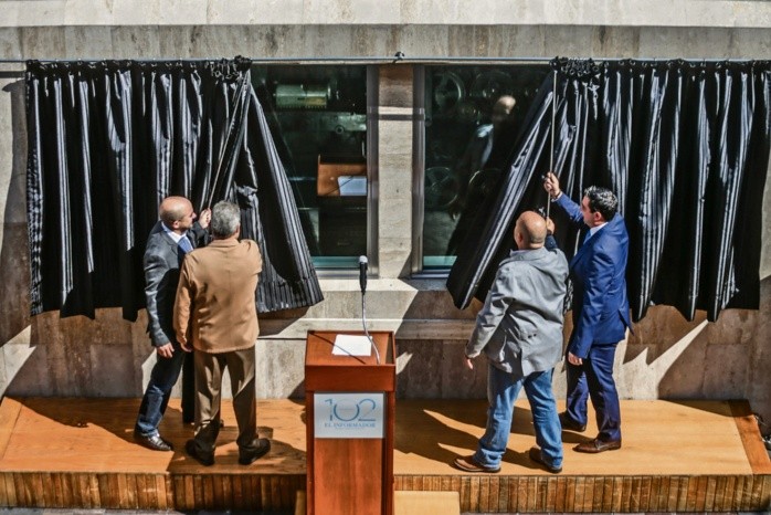 La primera rotativa marca “Goss”, utilizada por don Jesús Álvarez del Castillo Velasco durante la fundación de EL INFORMADOR, en 1917, fue presentada de manera oficial el pasado jueves a todos los jaliscienses.La inauguración fue encabezada por el director general de esta casa editorial, Carlos Álvarez del Castillo, acompañado por su hijo, Juan Carlos Álvarez del Castillo.En el evento, que se llevó a cabo en el marco del 102 aniversario de este medio, estuvieron presentes el gobernador Enrique Alfaro y el presidente municipal de Guadalajara, Ismael del Toro.La presentación de “Manuelita”, para la cual se construyó una ventana a un costado del edificio sede de esta casa editorial (sobre la calle Independencia, entre Pino Suárez y Belén, en el Centro tapatío), representa para el director general una manera de que la ciudadanía pueda ver “hacia adentro del periódico”, más allá de las noticias que día a día lleva a sus lectores.El mandatario estatal refirió que EL INFORMADOR es un testigo puntal de todo lo que ha ocurrido en la Entidad desde su fundación, por lo cual “representa un aporte invaluable en el desarrollo de la sociedad jalisciense”.“Sin duda, (’Manuelita’) forma parte de todo el esfuerzo que se realiza y que formará un impulso definitivo en los próximos meses de reactivación del Centro Histórico, del plan maestro ya con la finalización de las obras de la Línea 3. Lo que viene para esta zona es muy importante y esto, sin duda, contribuye a seguir incrementado los atractivos que tiene el Centro de Guadalajara para todos los que nos visitan”, dijo.El alcalde tapatío añadió que “Manuelita” permitirá a sus visitantes conocer un poco más de la historia de la ciudad. Detrás del cristal, aluzada con brillantes lámparas, se encuentra “Manuelita”.Es la primera rotativa marca “Goss” en la cual se imprimía EL INFORMADOR cuando se creó, en la capital del Estado, hace más de 100 años: en 1917.La imprenta fue nombrada de esta manera en honor a doña Manuela Zuloaga, con quien don Jesús Álvarez del Castillo, fundador de este medio de comunicación, contrajo matrimonio en 1908.Durante sus primeros años, EL INFORMADOR se imprimía en cuatro páginas en rotativas como “Marinoni” y “Duplex”.Sin embargo, posteriormente fue instalada esta “Goss”, con la cual se consiguieron ocho mil ejemplares por hora.Actualmente se imprime en una de la misma marca, pero más actual. Con la nueva máquina se producen 25 mil ejemplares cada 60 minutos.La develación de la ventana, a través de la cual los jaliscienses pueden observar a “Manuelita”, representa un nuevo espacio para visitar en Guadalajara, ya que permite que la ciudadanía pueda acercarse a ella para conocer un poco sobre el funcionamiento de esta casa editorial.En el evento en el cual se dio a conocer este sitio, ubicado en Independencia, entre Pino Suárez y Belén, el gobernador Enrique Alfaro aseguró que “Manuelita” será un referente obligado del primer cuadro de la ciudad gracias a la historia de EL INFORMADOR, del municipio y de la Entidad, a partir del “relanzamiento” de esta zona de la metrópoli, que tuvo “tiempos difíciles” durante las obras de la Línea 3 (L3) del Tren Ligero.Para el presidente municipal tapatío, Ismael del Toro, esta apertura representa un nuevo atractivo que se suma a los sitios históricos que alberga el Centro, pues los calandrieros añadirán la historia de la rotativa en los relatos que incluyen en sus recorridos turísticos.Durante la presentación de “Manuelita”, el gobernador Enrique Alfaro Ramírez afirmó que la integración de este atractivo en el primer cuadro de Guadalajara representa un ejemplo de la apertura de los medios de comunicación hacia los ciudadanos.“Me parece que estamos en una etapa donde todos tenemos que repensar nuestro rol en cada una de nuestras responsabilidades y creo que EL INFORMADOR pone un ejemplo de cómo no solamente en lo discursivo, sino también en la vida cotidiana, es un periódico que se abre a la gente y que le abre sus puertas a todos los jaliscienses”, dijo.Por su parte, el presidente municipal tapatío, Ismael del Toro, destacó que esta casa editorial pone un ejemplo de perseverancia y de trabajo de fondo para ser uno de los pilares de la metrópoli.“Ojalá que esto sirva de ejemplo para que la prensa escrita siga siendo un aspecto fundamental en la vida pública de la ciudad. Los medios de comunicación deben tener este tipo de aportes”, agregó.
