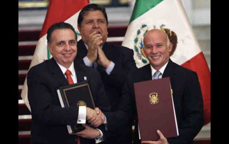 Economía | Firman TLC Acuerdo con Perú impulsará comercio La Secretaría de Economía (SE) resaltó la importancia que significa para el país ampliar su comercio con Latinoamérica Por: EL INFORMADOR 7 de abril de 2011 - 03:38 hs Bruno Ferrari (izquerda), durante la firma del convenio comercial. Atrás se congratula el presidente de Perú, Alan García. AFP / CIUDAD DE MÉXICO (07/ABR/2011).- El Acuerdo de Integración Comercial (AIC) firmado entre México y Perú permitirá incrementar los flujos de comercio e inversiones bilaterales, aprovechando el dinamismo económico de ambos países, además de diversificar las exportaciones nacionales hacia América Latina. La Secretaría de Economía (SE) resaltó la importancia que significa para el país ampliar su comercio con Latinoamérica, ya que representa un nuevo mercado de más de 450 millones de consumidores potenciales, cifra superior a los 340 millones ubicados en Estados Unidos y Canadá. Ayer, los gobiernos de México y Perú firmaron el acuerdo comercial tras 10 rondas de negociaciones y luego de superar el sensible tema agrícola, que dilató durante tres años y medio el proceso. El secretario de Economía, Bruno Ferrari, saludó la firma de este Tratado de Libre Comercio (TLC) y destacó los logros de Perú en materia comercial y económica. Temas Economía Mexicana Perú TLC Lee También México vs Colombia • Momentos destacados • Partido amistoso Infonavit: Esta es la edad máxima para solicitar un crédito en 2025 México vs Argentina • Momentos Destacados • Cuartos de Final • Mundial Sub-20 ¿Cómo otros países han reducido el tabaquismo? Recibe las últimas noticias en tu e-mail Todo lo que necesitas saber para comenzar tu día Registrarse implica aceptar los Términos y Condiciones