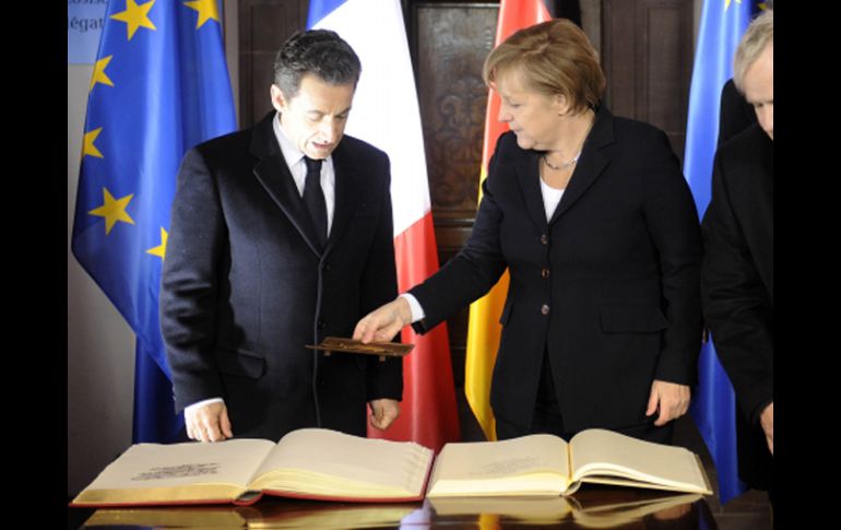 Economía | Nicolas Sarkozy, ha sostenido consultas regulares con la canciller alemana Merkel Alemania y Francia reiteran compromiso para defender el euro Ambos países, se encuentran en desacuerdo con muchos otros países sobre la mejor manera para prevenir que se propague la crisis de la deuda Por: AP 10 de diciembre de 2010 - 08:06 hs El presidente francés, Nicolas Sarkozy y la canciller alemana, Angela Merkel, firman el libro de visitas de Friburgo. AP / BRISGOVIA, ALEMANIA (10/DIC/2010).-Los gobernantes de Alemania y Francia se comprometieron el viernes a hacer todo lo que sea necesario para defender el euro, pero se mantuvieron reacios a la idea de crear bonos paneuropeos o a una ampliación del fondo de rescate de 750 mil millones de euros. Ambos países, las economías más grandes de la eurozona y sus mayores financistas, están en desacuerdo con muchos otros países sobre la mejor manera para prevenir que se propague la crisis de la deuda, lo que obligaría a rescates más costosos. El presidente francés, Nicolas Sarkozy, ha sostenido consultas regulares con la canciller alemana Angela Merkel antes de una cumbre de la Unión Europea la próxima semana. "Dejemos una cosa muy en claro: Estamos profundamente unidos al euro'', dijo Sarkozy en una conferencia de prensa. "Vamos a defender el euro, porque el euro es Europa''. "Nuestra determinación es total, tanto en Alemania como en Francia'', añadió. Dijo que las dos naciones están preparadas para aplicar todas las medidas necesarias para defender la moneda. Una cuestión clave en la cumbre de la semana próxima será el establecimiento de un mecanismo permanente anticrisis para la zona del euro de 16 naciones a partir de 2013. Merkel ha presionado fuertemente a favor de este mecanismo, que incluiría una serie de reglas nuevas de rescate que obligaría a los inversores privados a asumir pérdidas en algunos casos. El actual fondo de rescate que ahora se está aprovechando para rescatar a Irlanda expira en 2013 y Merkel se opone a una extensión sin cambios. Se ha hablado recientemente de aumentar el tamaño del fondo, pero Francia y Alemania se oponen a eso y Merkel reiteró el viernes que esa cuestión "no se ha planteado'', dado que la ayuda para Irlanda ni siquiera suma una décima parte del presupuesto del fondo. Sin embargo, Merkel no dejó dudas de que Alemania, la economía más grande de Europa, está igualmente determinada a defender la moneda común de 16 naciones. La canciller dijo que su importancia va más allá de ser sólo una unión monetaria. "Si el euro fracasa, Europa fracasa'', dijo. Temas Finanzas Francia Alemania Euro Lee También Inapam: Vigencia de la credencial si la tramitaste antes de 2025 ¿Por qué Nicolas Sarkozy, expresidente de Francia, fue encarcelado en La Santé? Buen Fin 2025 será más largo y esta es la razón Pensión Bienestar: fecha probable en la que iniciarían los pagos de noviembre 2025 Recibe las últimas noticias en tu e-mail Todo lo que necesitas saber para comenzar tu día Registrarse implica aceptar los Términos y Condiciones