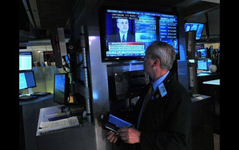 Economía | Nerviosismo por el posible fin de las compras de bonos que realiza la Reserva Federal Bolsa de Nueva York abre con importantes pérdidas La Bolsa de Valores de Nueva York abre con importantes pérdidas por el posible fin de las compras de bonos que realiza la Reserva Federal Por: NTX 7 de agosto de 2013 - 09:01 hs El Nasdaq Composite, de títulos bancarios, tecnológicos, industriales y de seguros también reporta una pérdida. ARCHIVO / NUEVA YORK, ESTADOS UNIDOS (07/AGO/2013).- La Bolsa de Valores de Nueva York abrió hoy con importantes pérdidas, ante el nerviosismo de los inversores por el posible fin de las compras de bonos que realiza la Reserva Federal para impulsar la economía estadounidense. El índice industrial Dow Jones, el más importante de Wall Street, mostraba durante los primeros minutos de transacciones bursátiles de este miércoles un retroceso de 68.57 puntos (-0.44 por ciento) para colocarse en 15 mil 450.17 unidades. La misma tendencia reportaba el NYSE Composite que bajaba 57.44 puntos (-0.60 por ciento) al ubicarse en nueve mil 556.87 unidades, mientras que el Standard & Poor's 500 perdía 9.25 puntos (-0.54 por ciento) al situarse en mil 688.12 unidades. El Nasdaq Composite, de títulos bancarios, tecnológicos, industriales y de seguros también reportaba una pérdida de 14.45 puntos (-0.39 por ciento) al operar en tres mil 651.32 unidades. Temas Bolsas de Valores Indicadores Reserva Federal (Fed) Nueva York Recibe las últimas noticias en tu e-mail Todo lo que necesitas saber para comenzar tu día Registrarse implica aceptar los Términos y Condiciones