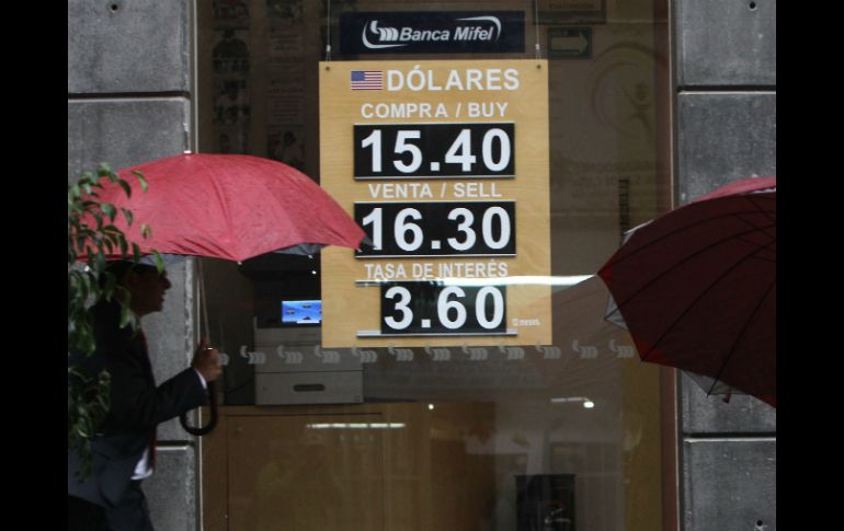 Economía | El billete verde avanza ocho centavos respecto al cierre de ayer Dólar se mantiene arriba de 16.00 pesos El billete verde avanza ocho centavos respecto al cierre de ayer, se compra en un mínimo de 15.48 pesos Por: NTX 24 de julio de 2015 - 14:39 hs El tipo de cambio para solventar obligaciones es de 16.2364 pesos. EFE / M. Guzmán CIUDAD DE MÉXICO (24/JUL/2015).- En la última jornada de la semana el dólar libre se vendió en un máximo de 16.56 pesos, lo que representó un avance de ocho centavos respecto al cierre de ayer, y se compró en un mínimo de 15.48 pesos. Por su parte, el euro avanzó 46 centavos, al alcanzar una cotización máxima a la venta de 18.51 pesos De acuerdo con Grupo Financiero Monex, desde la perspectiva local el comportamiento del mercado accionario y de deuda favorece la depreciación del peso. Mientras que a nivel global, el billete verde se ha fortalecido ante las probabilidades implícitas del alza en las tasas de interés de la Reserva Federal (Fed). El tipo de cambio para solventar obligaciones en moneda extranjera pagaderas en la República Mexicana es de 16.2364 pesos, indicó el Banco de México ( Banxico). BANCO COMPRA VENTA BANAMEX DÓLAR LIBRE 15.96 16.56 EURO 17.57 18.12 BANCOMER DÓLAR LIBRE 15.48 16.48 EURO 16.49 18.51 Temas Bancos Dólar Indicadores Euro Divisas Lee También Bolsa Mexicana gana y suma su tercera alza en la semana Beca Rita Cetina: familias que recibirán el pago extra en 2026; monto total Peso mexicano DESTRONA al dólar en la cotización de HOY jueves Bolsa Mexicana recupera terreno en una jornada de resultados mixtos a nivel mundial Recibe las últimas noticias en tu e-mail Todo lo que necesitas saber para comenzar tu día Registrarse implica aceptar los Términos y Condiciones
