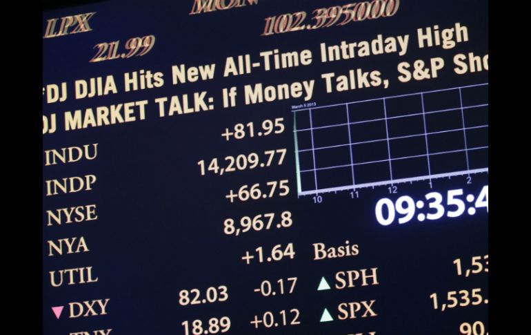Economía | Principal indicador recupera las pérdidas de la crisis Dow Jones cierra en máximo histórico El principal Indicador de la Bolsa de Nueva York supera el récord establecido el 9 de octubre de 2009 Por: AFP 5 de marzo de 2013 - 14:51 hs Dow Jones no había superado su máximo desde hace 5 años. AP / NUEVA YORK, ESTADOS UNIDOS (05/MAR/2013).- El principal indicador de la Bolsa de Nueva York, el Dow Jones, tocó un máximo histórico en el cierre del martes, recuperando las pérdidas de la crisis y subiendo a una cota no alcanzada en 5 años, en un mercado que apostaba por el crecimiento de la economía estadounidense. Según lo datos provisionales del cierre, el Dow Jones Industrial Average subió 0.89 por ciento, es decir 126.10 puntos, a un nivel de 14 mil 253.92 puntos, superando el récord establecido el 9 de octubre de 2007. El Dow Jones también marcó un máximo intradiario, de 14 mil 286.37 puntos, antes de ceder en las operaciones cercanas al cierre. Por su parte, el índice ampliado S&P 500 cerró levemente por debajo de su máximo histórico, marcado también en octubre de 2007, pese a que durante la jornada subió 0.96 por ciento a mil 539.79 puntos. El tecnológico Nasdaq ganó 1.32 por ciento en el día, impulsado por las ganancias de los títulos de Apple, que subieron 2.6 por ciento, sumando 42.1 puntos a 3 mil 224.13 puntos. Temas Indicadores Wall Street Dow Jones Lee También Difícil cierre para el peso; rompe el techo de las 19 unidades por dólar Bitcoin y el oro atraen a los inversores ante la debilidad del dólar estadounidense Bolsa Mexicana retrocede tras un ligero repunte en la jornada anterior Wall Street cierra en rojo, con retroceso de S&P 500 y el Nasdaq Recibe las últimas noticias en tu e-mail Todo lo que necesitas saber para comenzar tu día Registrarse implica aceptar los Términos y Condiciones