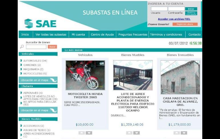 Economía | Fueron adquiridos por diversos postores más de mil vehículos chatarra El SAE obtiene 13.1 MDP en subasta electrónica El organismo inica su actividad comercial correspondiente al segundo semestre del año, con un mayor inventario de bienes disponibles para venta Por: NTX 3 de julio de 2012 - 16:03 hs El SAE ofrece 213 lotes con más de ocho millones de bienes de mercancía diversa en su sitio web de Subasta Electrónica. / CIUDAD DE MÉXICO (03/JUL/2012).- El Servicio de Administración y Enajenación de Bienes (SAE) informó que su décimo segunda subasta electrónica del año arrojó un ingreso de 13.1 millones de pesos, por la venta de 75 lotes de vehículos y mercancía diversa. Apuntó que durante este evento comercial en particular, además de la demanda y activa participación de los compradores de autos en aptitud de circular, continuó la consolidación de un reciente segmento o nicho de mercado: la venta de bienes con fines de reciclaje. Al respecto, agregó, en los 14 días que duró este proceso comercial, fueron adquiridos por diversos postores más de mil vehículos chatarra por un importe global superior a siete millones de pesos. Estas unidades tienen como fin específico el reciclaje de metales, con lo cual además el SAE libera importantes espacios físicos de almacenaje, y los costos asociados a ello, añadió en un comunicado. Al mismo tiempo, el organismo descentralizado de la Secretaría de Hacienda y Crédito Público (SHCP) inició su actividad comercial correspondiente al segundo semestre del año, con un mayor inventario de bienes disponibles para venta. Anunció que a través de su décimo tercera Subasta Electrónica, que se mantendrá abierta a la participación del público en general hasta el próximo miércoles 11 de julio, en el sitio web, el SAE ofrece 213 lotes con más de ocho millones de bienes de mercancía diversa. El SAE lleva a cabo las Subastas Electrónicas como una de las modalidades de venta de sus procesos de comercialización de bienes, previstos en la legislación vigente. Estas subastas operan de manera permanente. Temas Economía Mexicana Subastas SHCP Lee También Una vacuna contra el egoísmo México cae ante Corea del Norte en su debut del Mundial Sub-17 Femenil México vs Corea del Sur: EN VIVO, dónde ver el partido por el Mundial Sub-17 femenil México, el número uno de Concacaf según ranking de la FIFA Recibe las últimas noticias en tu e-mail Todo lo que necesitas saber para comenzar tu día Registrarse implica aceptar los Términos y Condiciones