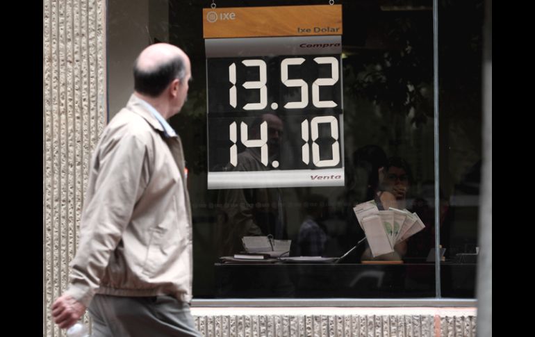 Economía | Se vende a 14.10 pesos El dólar alcanza su nivel máximo del año Se compra en un mínimo de 12.95 pesos Por: NTX 23 de septiembre de 2011 - 08:54 hs Superó este día los 14.00 pesos ante la incertidumbre financiera que existe en el mundo. NOTIMEX / CIUDAD DE MÉXICO (23/SEP/2011).- Esta mañana, el dólar libre alcanzó su nivel máximo del año, al venderse hasta en 14.10 pesos, en centros cambiarios que operan en el Aeropuerto Internacional Benito Juárez de la Ciudad de México (AICM). Asimismo, se compra en un mínimo de 12.95 pesos. En promedio, el billete verde se ofrece en 13.36 pesos y se adquiere en 12.63 pesos en la terminal aérea capitalina. Por su parte, el euro se oferta en un máximo de 19.95 pesos, mientras que se adquiere en un mínimo de 18.50 pesos. Temas Dólar Indicadores Ciudad de México Recibe las últimas noticias en tu e-mail Todo lo que necesitas saber para comenzar tu día Registrarse implica aceptar los Términos y Condiciones