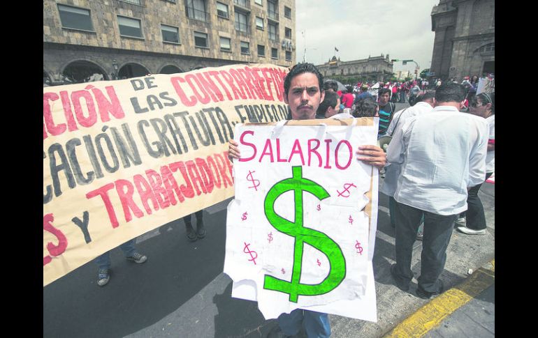 Economía | Máximo seis de cada 10 jaliscienses gana 200 pesos al día El salario en Jalisco no da para vivir de forma digna: secretario del Trabajo El titular de la dependencia atribuye que los sueldos bajos son por la sobredemanda de empleo Por: EL INFORMADOR 2 de mayo de 2014 - 03:11 hs POR EL FUTURO. Miles de personas marcharon ayer para exigir mejores condiciones laborales. / GUADALAJARA, JALISCO (02/MAY/2014).- El salario de 200 pesos al día que reciben como máximo seis de cada 10 jaliscienses no alcanza para “vivir de forma digna”, reconoció el secretario del Trabajo y Previsión Social ( STPS) del Estado, Eduardo Almaguer, quien atribuyó su precariedad a la sobredemanda de empleo y la imposibilidad de cubrirla de forma inmediata. “Encontramos nosotros lugares donde pagan 500 pesos a la semana, 700 pesos… pero el promedio son 900 pesos en la industria de la manufactura, y no es suficiente. En Jalisco no aspiraremos a mejores salarios si no es a partir de que tengamos recursos humanos mejor capacitados y mejor preparados”. El secretario general de la Confederación Revolucionaria de Obreros y Campesinos, (CROC), Antonio Álvarez Esparza, aseguró que la reforma laboral acentuó la caída del poder adquisitivo del salario, que en los últimos 12 años ha sido de 25 por ciento. Temas STPS Economía local Eduardo Almaguer Ramírez Salarios Lee También Dólar sube ante tensiones comerciales y preocupaciones fiscales Caen las exportaciones de vehículos pesados Inflación en México se acelera en septiembre; liga dos meses al alza La creación de empleo va en caída este año Recibe las últimas noticias en tu e-mail Todo lo que necesitas saber para comenzar tu día Registrarse implica aceptar los Términos y Condiciones