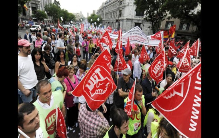 Economía | Con ella se pretende resolver algunos de los problemas financieros del país España aprueba reforma laboral Busca 'reducir la temporalidad' en el empleo y una mayor 'estabilidad y flexibilidad' que redunde en un aumento de la productividad Por: EFE 16 de junio de 2010 - 06:57 hs La semana pasada, algunos sindicatos y funcionarios se manifestaron en contra de los recortes salariales en España. AFP / MADRID, ESPAÑA (16/JUN/2010).- El Gobierno español aprobó hoy la reforma del mercado laboral que rechazan los sindicatos, que han convocado en su contra la primera huelga general del actual gobierno socialista. La vicepresidenta primera del Ejecutivo, María Teresa Fernández de la Vega, anunció la aprobación de al reforma "ambiciosa y de calado", que dijo busca "reducir la temporalidad" en el empleo y una mayor "estabilidad y flexibilidad" que redunde en un aumento de la productividad. De la Vega reconoció que se aprueba sin el acuerdo de la patronal y de los sindicatos, y afirmó que con ella se busca "atajar algunos de los problemas más acuciantes" que vive España. Temas España Crisis financiera Sindicatos Lee También Cartucho Activistas lanzan pintura a un cuadro de Cristóbal Colón en museo de Madrid España consigue su boleto a los cuartos de final del Mundial Sub-20 Derrumbe de edificio en Madrid deja cuatro desaparecidos y tres heridos Recibe las últimas noticias en tu e-mail Todo lo que necesitas saber para comenzar tu día Registrarse implica aceptar los Términos y Condiciones