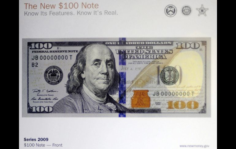 Economía | Se trata de la primera renovación desde 1996 de este billete Estados Unidos lanza nuevo billete de 100 dólares El principal elemento contra las falsificaciones es una cinta de seguridad azul vertical al medio del billete que contiene la cifra 100 y la campana de Filadelfia en miniatura y 3D Por: AFP 9 de octubre de 2013 - 11:30 hs El nuevo billete de cien dólares, en el Departamento del Tesoro, en Washington. EFE / WASHINGTON, ESTADOS UNIDOS (09/OCT/2013).- Estados Unidos lanzará el martes un nuevo billete de 100 dólares que incorporará un nuevo toque de color al verde, además de nuevos mecanismos para dificultar falsificaciones. Se trata de la primera renovación desde 1996 de este billete fundamental en las transacciones en todo el mundo que exhibe la imagen de Benjamin Franklin en el frente. La nueva versión agrega un ''100'' amarillento en una esquina, y cerca de Franklin, un tintero, también amarillo, decorado con la campana de la libertad de Filadelfia, es de un color que pasa del marron al verde según el ángulo de visión. El principal elemento contra las falsificaciones es una cinta de seguridad azul vertical al medio del billete que contiene la cifra 100 y la campana de Filadelfia en miniatura y en tres dimensiones que parecen moverse junto con el papel. Temas Economía Internacional Estados Unidos Moneda Lee También Hamás dice que recibió garantías de que la guerra en Gaza terminó Todas las selecciones que han calificado al Mundial 2026 hasta hoy ALERTA en Jalisco por formación de ciclón "Raymond" Esta es la última guerra que Trump resolvió, según él mismo Recibe las últimas noticias en tu e-mail Todo lo que necesitas saber para comenzar tu día Registrarse implica aceptar los Términos y Condiciones