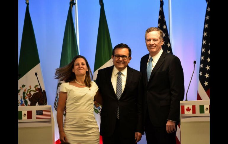 CIUDAD DE MÉXICO (05/SEP/2017).- El secretario de Economía, Ildefonso Guajardo, informó que fue exitosa la segunda ronda de negociaciones del Tratado de Libre Comercio para América del Norte celebrada en México del 1 al 5 de septiembre y se obtuvo un importante progreso en varias disciplinas.Al ofrecer una conferencia de prensa junto con Chrystia Freeland, ministra de Asuntos Exteriores de Canadá, y Robert Lighthizer, representante Comercial de Estados Unidos, Guajardo indicó que en varios grupos, resultó en la consolidación de propuestas en un solo texto en la cual los grupos seguirán elaborando en las próximas rondas de negociación.Indicó que se obtuvo un importante progreso en varias de las disciplinas y las partes esperamos avanzar aún más en las siguientes semanas."Los tres países continuaremos con los respectivos procesos de consulta interna en preparación de la tercera ronda de negociación que tendrá lugar en Ottawa, Canadá del 23 al 27 de septiembre".Indicó que los ministros de México, Estados Unidos y Canadá reafirman su compromiso de tener una negociación acelerada e integral con el objeto compartido de concluir el proceso hacia el final de este año.La conclusión exitosa de estas negociaciones actualizará el Tratado de Libre Comercio de América del Norte a través de nuevas reglas que generarán importantes oportunidades económicas para la región favoreciendo el crecimiento y desarrollo de los tres países, señaló.