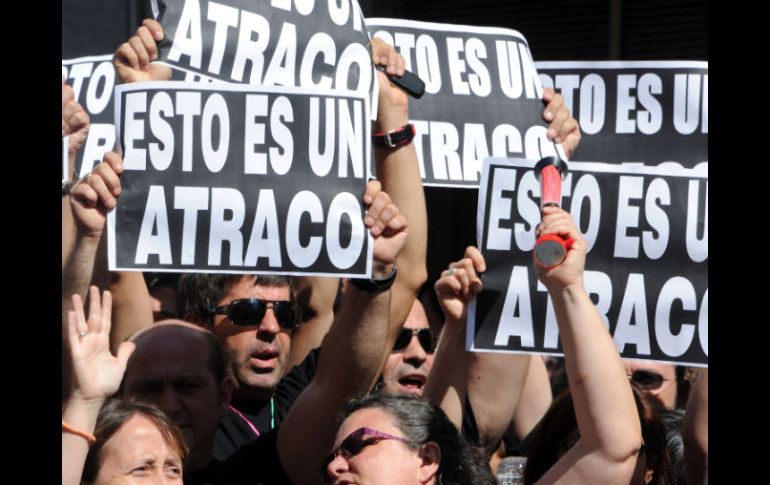 Economía | Los trabajadores marcharon por distintas calles de Madrid Funcionarios españoles protestan en Madrid por los recortes salariales Los trabajadores marcharon por distintas calles de Madrid y animaron a unirse a las reivindicaciones Por: EFE 16 de julio de 2012 - 08:15 hs Los manifestantes portaron pancartas y camisetas con lemas como ''Esto es un atraco'. AFP' / MADRID, ESPAÑA (16/JUL/2012).- Centenares de funcionarios españoles se manifestaron hoy ante varias sedes institucionales de Madrid, y en los alrededores del Congreso de los Diputados (Cámara Baja del Parlamento español), para protestar contra los recortes salariales y las condiciones de los empleados públicos. El Gobierno español aprobó el pasado viernes un nuevo paquete de medidas, destinadas a lograr un ajuste por valor de 65 mil millones de euros (más de cien mil millones de pesos), que incluyen la eliminación de la paga de Navidad este año para millones de trabajadores públicos. Desde la Gran Vía, en pleno centro de la capital, los funcionarios iniciaron una "marcha fúnebre" en la que varias viudas simularon un entierro ante un ataúd por la muerte de los "derechos laborales" y de los "servicios públicos". Los manifestantes portaron pancartas y camisetas con lemas como "Esto es un atraco", "Por las políticas activas de empleo", "Más bomberos, menos cargos a dedo" y "Bomberos Madrid. Bajo Mínimos". Durante el recorrido los funcionarios protestaron por el recorte de sueldos y derechos, y animaron a los empleados públicos, a su paso por diferentes sedes oficiales de las administraciones, a unirse a las reivindicaciones. La marcha discurrió por diferentes calles del centro de Madrid hasta llegar hasta la sede del Ayuntamiento y los alrededores del Congreso de los Diputados, que estaba custodiado por la Policía. La manifestación transcurrió sin incidentes de importancia, aunque fue necesario realizar cortes de tráfico en el centro de la ciudad. Temas Economía Internacional España Manifestaciones en el mundo Crisis Recibe las últimas noticias en tu e-mail Todo lo que necesitas saber para comenzar tu día Registrarse implica aceptar los Términos y Condiciones