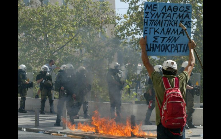 Economía | Se registran enfrentamientos entre manifestantes y policías Huelga general contra los recortes paraliza Grecia La jornada de paro recibió también un impulso adicional al sumarse a la huelga la Confederación Nacional de Comercio y la Confederación General de Pequeños Empresarios Por: EFE 18 de octubre de 2012 - 11:49 hs Un manifestante sostiene una pancarta con consignas frente a policías antidisturbios. XINHUA / ATENAS, GRECIA (18/OCT/2012).- La segunda huelga general que paraliza en tres semanas Grecia, sumida en una profunda crisis y al borde de la bancarrota, se ha visto de nuevo ensombrecida por los enfrentamientos entre un pequeño número de violentos y la policía, que se han saldado con 110 detenidos y nueve heridos. A la manifestación central en Atenas acudieron 45 mil personas, según la Policía, que protestaban contra una nueva oleada de recortes tras cinco años de recesión y con el paro en el 25%, el mismo día que los líderes de la Unión Europea (UE) se reúnen en Bruselas para debatir cómo poner coto a la crisis. Todo transcurrió con calma hasta cerca del final, cuando varias decenas de encapuchados arrojaron piedras, botellas y bombas incendiarias a los antidisturbios en la plaza Syntagma, que respondieron con cargas y gases lacrimógenos. Los enfrentamientos se saldaron con nueve heridos, entre ellos un manifestante y tres agentes hospitalizados, y se detuvieron a 110 personas, informó la Policía. De los trasladados a comisaría, siete han pasado a prisión con diversos cargos, y los demás han quedado en libertad después de ser fichados. Antes de comenzar los incidentes y las carreras, un hombre de 65 años que participaba en la manifestación tuvo un paro cardíaco y falleció en un hospital de Atenas. En la quinta huelga general del año para clamar contra los nuevos ajustes que pretende imponer el Gobierno a instancias de la troika formada por la Comisión Europea (CE), Banco Central Europeo (BCE) y Fondo Monetario Internacional (FMI)el seguimiento ha sido mayoritario, según los sindicatos. Movilizados con lemas como "Abajo el Gobierno y la troika" y "Cuando la tiranía está institucionalizada, la resistencia es un deber", los manifestantes, algunos con banderas españolas y portuguesas, recorrieron las avenidas principales de Atenas hasta la sede del Parlamento, en la emblemática plaza Syntagma. Otras manifestaciones con la participación de miles de personas se sucedieron en las principales ciudades del país, en Salónica, Patras, Heraclión, Serres y Janiá. La participación en la huelga ha sido muy alta, según los datos de los dos mayores sindicatos del país, GSEE y ADEDY, en el sector naval, los transportes, refinerías, la construcción, la hostelería y entre los funcionarios. La jornada de paro recibió también un impulso adicional al sumarse a la huelga la Confederación Nacional de Comercio y la Confederación General de Pequeños Empresarios. El secretario general del sindicato GSEE, Yannis Panagópulos, criticó que "en la cumbre de jefes de Estado y de Gobierno de la UE se toman decisiones para los pueblos europeos sin tener en cuenta lo que los pueblos necesitan". Alexis Tsipras, el líder de la mayor fuerza opositora, Syriza, participó hoy en la protesta y criticó lo que a su juicio fue la "violencia indiscriminada" de la Policía, además de cargar contra el Gobierno por tratar de imponer más recortes. La troika exige al Gobierno adoptar un plan de austeridad adicional de 13 mil 500 millones, con nuevos recortes de salarios públicos, pensiones y prestaciones sociales. "Participo en la huelga porque mi salario ha sido recortado en 500 euros en los tres últimos años", dijo a Efe Sula, una empleada del ayuntamiento de Peristeri, en la periferia de Atenas. Por su parte, Dimitris, dueño de un café en el centro de Atenas, declaró: "Me estoy manifestando porque el volumen de mi negocio se ha reducido un 60 % en el último año". "Era necesario poner un poco de orden en las finanzas del país, pero lo que ocurre es la demolición de todo. No se cuántos meses podré mantener mi empresa", lamentó. Temas Europa Manifestaciones en el mundo Grecia Lee También Marchas HOY CDMX: afectaciones viales, de este 20 de octubre Jugadores de LaLiga se manifiestan contra el partido en Miami Protestan contra Trump en Estados Unidos Represión de ICE en Chicago Recibe las últimas noticias en tu e-mail Todo lo que necesitas saber para comenzar tu día Registrarse implica aceptar los Términos y Condiciones