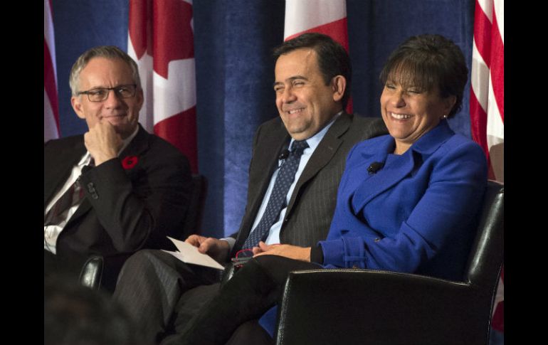 Economía | Junto a sus contrapartes de EU y el anfitrión, abordan temas prioritarios del TLCAN Ildefonso Guajardo concluye visita a Canadá Junto a sus contrapartes de Estados Unidos y el anfitrión, abordan temas prioritarios del TLCAN Por: NTX 31 de octubre de 2014 - 19:57 hs En el encuentro trilateral, los funcionarios hablan sobre la innovación tecnológica en los procesos de manufactura. AP / F. Gunn CIUDAD DE MÉXICO (31/OCT/2014).- El secretario de Economía, Ildefonso Guajardo, concluyó su visita de trabajo de dos días a Toronto, Canadá, en la que participó en la Segunda Edición de la Conferencia sobre Competitividad e Innovación de América del Norte. Durante su estancia, en la que estuvo acompañado por el subsecretario de Comercio Exterior, Francisco de Rosenzweig, y por el embajador Francisco Suárez Dávila, el funcionario federal participó en un desayuno organizado por la Canadian Council Chief Executives (CCCE). En el evento de ese organismo que agrupa a los directivos de las principales empresas canadienses, se refirió a las reformas económicas impulsadas por el Presidente Enrique Peña Nieto y a la contribución de éstas al incremento de la competitividad de México y América del Norte. En el marco de esta visita, Guajardo Villarreal se reunió con sus contrapartes de Estados Unidos, Penny Pritzker, y de Canadá, Edward Fast, para abordar los temas prioritarios de la agenda económica de México con esas naciones. Los titulares de Economía de los tres países coincidieron en que la aplicación de innovación tecnológica en la cadena de valor contribuye a fortalecer la competitividad de la región. Ante empresarios, académicos y funcionarios de los tres países, los ministros señalaron que una mayor cooperación trilateral, en un marco regulatorio claro y de seguridad, hará más competitiva a la región. El titular de la Secretaría de Economía (SE) participó también, junto con sus homólogos de esas dos naciones, en un almuerzo organizado por el CCCE, en el que se trataron, entre otros temas, las perspectivas económicas de la región. Así como la participación de América del Norte en los procesos productivos globales y los grandes retos que enfrenta la región en el actual contexto económico internacional. Durante el almuerzo, Guajardo Villarreal anunció que la próxima edición de la Conferencia sobre Competitividad e Innovación de América del Norte se llevará a cabo en México (NACIC, por sus siglas en inglés). Señalan avances del TLCAN Guajardo destacó que antes del Tratado de Libre Comercio de América del Norte (TLCAN), México exportaba 55 por ciento de minerales y petróleo y sólo 5.0 por ciento de manufactura, "hoy exportamos 83 por ciento de manufactura y 40 por ciento de petróleo". "Esto ha sido una tremenda transformación de México porque nuestro comercio se multiplicó siete veces", precisó el titular de Economía, quien destacó el crecimiento de la industria de tecnología avanzada en Guadalajara. Pritzker destacó que "muchos acuerdos de libre comercio se negocian bilateralmente, pero necesitamos uno multilateral de altos estándares y eso lo da el Acuerdo de Asociación Transpacífico", tratado de libre comercio promovido por Estados Unidos y que incluye a Chile, México y Perú. Pritzker definió que uno de los retos en las negociaciones del TPP es que "los países involucrados debemos hacer concesiones para obtener los beneficios de ser parte de esta zona de libre comercio que abarca 40 por ciento del PIB (Producto Interno Bruto) mundial". El ministro canadiense de Comercio Internacional destacó la "robusta" reforma energética mexicana, la cual contribuirá a la competitividad y seguridad. Fast manifestó que las empresas canadienses del sector energético están listas para hacer negocios con las empresas mexicanas. En su encuentro trilateral, con sesiones a puerta cerrada, los tres funcionarios hablaron sobre innovación tecnológica en los procesos de manufactura e infraestructura, así como sobre el impacto económico del apoyo a las mujeres empresarias. En 2013, los países que integran el TLCAN representaron el 27 por ciento del PIB mundial y el 15 por ciento del comercio global. Ese año, los intercambios comerciales entre México, Estados Unidos y Canadá ascendieron a un billón de dólares, 3.7 veces más que el comercio trilateral registrado en 1993, año previo a la entrada en vigor del TLCAN. Temas TLCAN Economía Internacional Secretaría de Economía Ildefonso Guajardo Villarreal Lee También Suspenden clases en estos 10 municipios de Jalisco ante el paso de tormenta tropical 'Raymond' Pensión Mujeres Bienestar: ¿Cuándo recibirán el primer pago las beneficiarias? Hamás dice que recibió garantías de que la guerra en Gaza terminó Todas las selecciones que han calificado al Mundial 2026 hasta hoy Recibe las últimas noticias en tu e-mail Todo lo que necesitas saber para comenzar tu día Registrarse implica aceptar los Términos y Condiciones