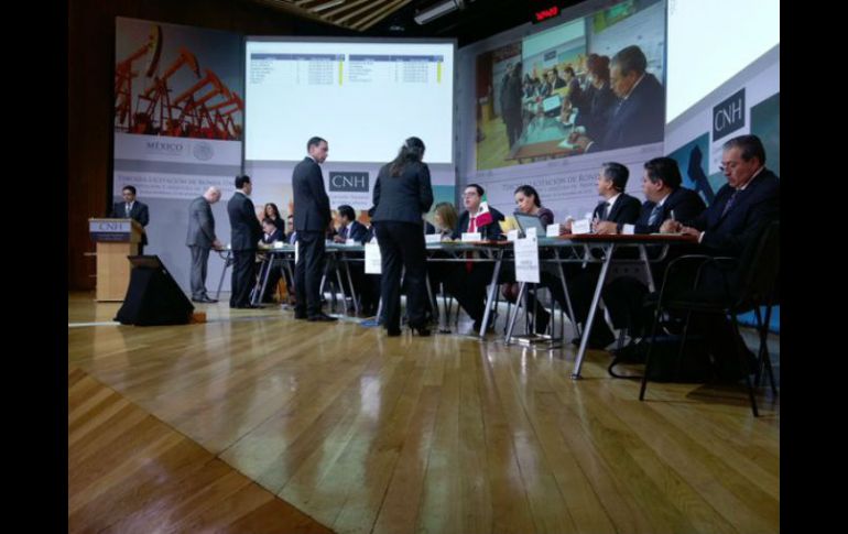 Economía | La apertura se realizará en dos etapas y los contratos se adjudicarán conforme al orden Inicia presentación de propuestas para tercera fase de Ronda Uno La apertura se realizará en dos etapas y los contratos se adjudicarán conforme al orden publicado Por: NTX 15 de diciembre de 2015 - 07:52 hs Intereados depositan sus propuestas en las urnas y entregan datos. TWITTER / @CNH_MX CIUDAD DE MÉXICO (15/DIC/2015).- Los interesados en participar en la tercera licitación de la Ronda Uno comenzaron a presentar de las garantías de seriedad, los sobres con las propuestas económicas y el respaldo electrónico. Posteriormente, el comité licitatorio devolverá los sobres y el respaldo electrónico a cada uno de los visitantes con la firma y el sello de seguridad; después llamará a cada uno de acuerdo con el orden de registro para que depositen sus propuestas en cada una de las 25 urnas y entreguen la memoria USB con el respaldo. La apertura se realizará en dos etapas y los contratos se adjudicarán conforme al orden publicado en las bases, para cada área contractual se procederá a leer el valor mínimo determinado por la Secretaría de Hacienda y se anunciará la propuesta ganadora. La Comisión Nacional de Hidrocarburos (CNH) precalificó a los 51 interesados en participar en la tercera convocatoria de licitaciones de la Ronda Uno, la cual incluye 25 campos terrestres. Los campos a adjudicarse son Barcodón, Benavides Primavera, Calibrador, Calicanto, Carretas, Catedral, Cuichapa Poniente, Fortuna Nacional, La Laja, Malva, Mareografo, Mayacaste, Moloacán, Mundo Nuevo, Paraíso, Duna, Paso de Oro, Peña Blanca, Pontón, Ricos, San Bernardo, Secadero, Cajón, Tecolutla y Topen. Las empresas que precalificadas en lo individual son Armour Energy Limited, Carso Oil and Gas, Cheiron Holdings Limited, La Huasteca, Citla Energy Onshore, Compañía Petrolera Perseus, Consorcio Manufacturero Mexicano, Construcciones y Servicios Industriales Globales, Controladora de Infraestructura Petrolera México, CPVEN E&P Corp. Asimismo, Diavaz Offshore, East West Petroleum, GAT Oil & Gas, GDF Suez E&P International, Generadora y Abastecedora de Energía de México, GPA Energy, Gran Tierra Energy, Grupo Diarqco, Iberoamericana de Hidrocarburos, Lewis Energy México, Pacific Rubiales E&P México, Perote Exploración y Producción, Petroleum Incremental. También está Renaissance Oil, Sánchez-Olium, Sarreal, Servicios de Extracción Petrolera Lifting de México, Servicios PJP4 de México, Strata Campos Maduros, Sun God Energía de México, T5 Enermusa, Tecpetrol internacional y Tonalli Energía. Mientras que los consorcios son Bin Administrativo, Max Energy Holdings y Galca Energy; Caabsa Infraestructura, Zenith Servicios Petroleros y Oleoducto del Norte de Colombia; además de Desarrolladora Oleum, Ingeniería, Construcciones y Equipos Conequipos, Industrial Consulting, Marat International y Constructora Tzaulan. Geo Estratos Mxoil Exploración y Producción, Geo Estratos; GeoPark Limited y Newpek Exploración y Extracción; Grupo Industrial de Tabasco y Servicios Asociados; Grupo R Exploración y Producción, con Constructora y Arrendadora México; Grupo Vordcab y OCM Vordcab; Jaguar Exploración y Producción de Hidrocarburos con Energia Americas II. Además, Nuvoil, Sistemas Integrales de Compresión y Constructora Marusa; Omega Energy International, Ieed Holding Group y GSEEM; Operadora Productora y Exploradora Mexicana, con Petrosantander Luxembourg Holdings; Perfolat de México, Canamex Dutch y American Oil Tools. También Petrobal y PetroSouth Properties; Servicios Administrativos Somer y Mexport Equipment; Steel Serv, Constructora Hostotipaquillo, Desarrollo De Tecnología y Servicios Integrales, Mercado De Arenas Sílicas; Torenco Energy y Petrodata Services; Tubular Technology, GX Geoscience Corporation y Roma Energy Holdings. Temas Reforma Energética Petróleo Empresas Combustible SHCP Secretaría de Energía Recibe las últimas noticias en tu e-mail Todo lo que necesitas saber para comenzar tu día Registrarse implica aceptar los Términos y Condiciones