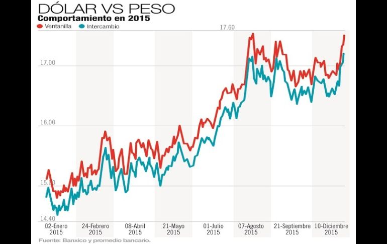 Economía | Al menudeo, el dólar cerró en 17.48 pesos, dos centavos menos de su nivel máximo La reunión de la Fed pone de nervios al mercado cambiario Al menudeo, el dólar cerró en 17.48 pesos, dos centavos menos de su nivel máximo histórico Por: EL INFORMADOR 11 de diciembre de 2015 - 00:38 hs Los analistas observan un alza en la demanda de dólares por parte de especuladores. EL INFORMADOR / J. López CIUDAD DE MÉXICO (11/DIC/2015).- El mercado cambiario continúa víctima del nerviosismo y la cotización del peso frente al dólar sufrió otra jornada en negativos al finalizar con una depreciación de 0.8 por ciento. En operaciones al menudeo, el dólar cerró en 17.48 pesos, dos centavos menos de su nivel máximo histórico alcanzado el pasado 25 de agosto, de acuerdo con información de Banamex. El determinante principal de la depreciación del peso fue la especulación por el próximo incremento a la tasa de referencia de la Fed el 16 de diciembre, después de siete años en un rango mínimo de 0 a 0.25%, dijeron analistas del Banco Base. Las pérdidas del peso también se debieron a la baja liquidez del mercado cambiario, lo cual permitió que un reducido número de participantes generara movimientos para el tipo de cambio. Además, la moneda mexicana fue afectada por los débiles precios del petróleo, debido que el West Texas Intermediate (WTI) bajó a un nuevo mínimo de 36.38 dólares por barril, por primera vez desde febrero de 2009, para cerrar con una pérdida de 1.99 por ciento. En consecuencia, el Banco de México (Banxico) subastó 200 millones de dólares, con lo que colocó en lo que va de la semana 600 millones. Los expertos afirman que con ello el Banxico evidencia que los riesgos para el tipo de cambio seguirán al alza hasta el próximo 16 de diciembre. La consolidación del tipo de cambio por arriba de 17.00 pesos incrementa el riesgo de nuevos máximos históricos en las próximas jornadas. Los analistas señalaron que ha visto un incremento en la demanda de dólares por parte de especuladores y de corporativos, en la antesala a un primer incremento a la tasa de referencia de la Reserva Federal, el próximo miércoles 16 de diciembre. El FMI pide “justificación” a la Fed El director del Departamento del Hemisferio Occidental del Fondo Monetario Internacional (FMI), Alejandro Werner, aseguró que “es igual de importante la acción que la justificación” de la Reserva Federal (Fed) sobre el inicio del ajuste monetario. “Veremos lo que hace la Fed la próxima semana”, indicó Werner. La Fed decidirá, tras su reunión del 15 y 16 de diciembre, si eleva finalmente los tipos de interés de referencia, entre 0% y 0.25% desde finales de 2008 y los analistas apuntan a que podría ser la fecha del inicio del ajuste. Werner reconoció que esta decisión, considerada la más importante de la Fed en años, tiene notables implicaciones. “Este movimiento tan pequeño en la política monetaria ha cobrado unas dimensiones más allá de las reales, porque viene de un tiempo de interés a cero de muchos años (en Estados Unidos)”. Temas Petróleo Dólar Indicadores Reserva Federal (Fed) Lee También Un país donde la salud mental no existe en el presupuesto Dólar sube ante tensiones comerciales y preocupaciones fiscales Bitcoin y el oro atraen a los inversores ante la debilidad del dólar estadounidense Dólar amanece encarecido este 10 de octubre Recibe las últimas noticias en tu e-mail Todo lo que necesitas saber para comenzar tu día Registrarse implica aceptar los Términos y Condiciones