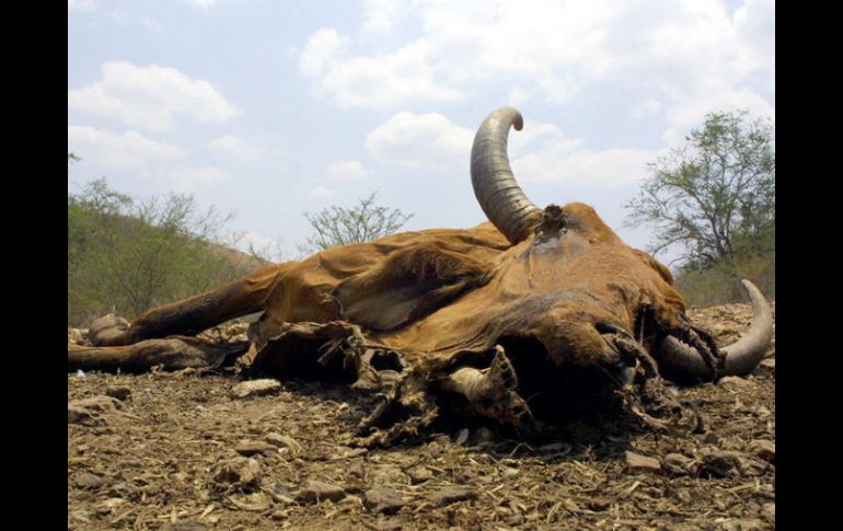 Economía | Los productores afectados no tienen alternativa para poder producir La sequía devasta 963 mil hectáreas en el país Se ha pagado mil 600 millones de pesos a los diferentes afectados por estos fenómenos climáticos, entre apoyos y coberturas de seguros Por: SUN 24 de noviembre de 2011 - 13:27 hs Debido a la sequía, se ha reportado formalmente la muerte de 42 mil cabezas de ganado. ARCHIVO / CIUDAD DE MÉXICO (24/NOV/2011).- Las sequías han dejado hasta el pasado 18 de noviembre una pérdida de 963 mil hectáreas en todo el país y se ha reportado formalmente la muerte de 42 mil cabezas de ganado, informó el titular de la Secretaría de Agricultura, Ganadería, Desarrollo Rural, Pesca y Alimentación (Sagarpa), Francisco Mayorga. Entrevistado luego de inaugurar el primer Foro Económico de Pesca y Acuacultura, al que asisten funcionarios y expertos de varios países, Mayorga detalló que se ha pagado mil 600 millones de pesos a los diferentes afectados por estos fenómenos climáticos, entre apoyos y coberturas de seguros. Reconoció que los productores de los estados afectados por las sequías no tienen alternativa para poder producir, por lo que se promueven cultivos forrajeros, porque estos demandan menos cantidad de agua que los granos y es necesario sostener el ganado en la temporada más critica que será la primavera del 2012. "Mientras no haya agua, si no hay lluvias, ni riego, no hay manera de producir nada", insistió. Temas Economía Mexicana Sagarpa Sequía Recibe las últimas noticias en tu e-mail Todo lo que necesitas saber para comenzar tu día Registrarse implica aceptar los Términos y Condiciones
