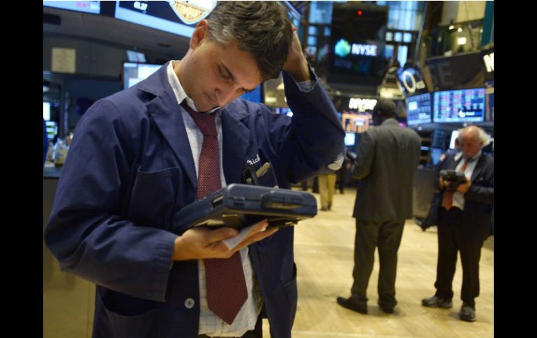 Economía | Dow Jones muestra retroceso de 43.49 puntos Números rojos, en la apertura de Wall Street Una de las causas es el aumento en las solicitudes semanales de ayuda por desempleo en EU Por: NTX 29 de octubre de 2015 - 07:59 hs La Reserva Federal decide mantener sin cambios su política monetaria. EL INFORMADOR / ARCHIVO NUEVA YORK, ESTADOS UNIDOS (29/OCT/2015).- La Bolsa de Valores de Nueva York abrió con números rojos tras conocerse un aumento en las solicitudes semanales de ayuda por desempleo en Estados Unidos y la decisión de la Reserva Federal de mantener sin cambios su política monetaria. Durante los primeros minutos de transacciones en Wall Street, el índice industrial Dow Jones mostraba este jueves un retroceso de 43.49 puntos (-0.24 por ciento) para colocarse en 17 mil 736.03 unidades. La misma tendencia reportaba el NYSE Composite que bajaba 53.72 puntos (0.51 por ciento) al ubicarse en 10 mil 484.48 unidades, mientras que el Standard & Poor's 500 descendía 5.73 puntos (0.27 por ciento) para situarse en dos mil 084.62 unidades. Por su parte, el Nasdaq Composite, de títulos bancarios, tecnológicos, industriales y de seguros, registraba una caída de 25.01 puntos (0.49 por ciento) al operar en cinco mil 070.68 unidades. Temas Indicadores Wall Street Dow Jones Lee También Peso REPUNTA en cierre semanal frente al dólar tras pérdidas El oro y la plata alcanzan precios históricos Bolsa Mexicana gana y suma su tercera alza en la semana Bolsa Mexicana recupera terreno en una jornada de resultados mixtos a nivel mundial Recibe las últimas noticias en tu e-mail Todo lo que necesitas saber para comenzar tu día Registrarse implica aceptar los Términos y Condiciones