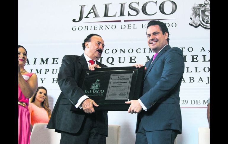 Economía | El galardón fue entregado a Grupo de la Rosa Otorgan el 'Distintivo Jalisco al Mérito Laboral' El galardón fue entregado a Grupo de la Rosa Por: EL INFORMADOR 30 de mayo de 2015 - 00:16 hs Entrega. El empresario recibe el galardón. ESPECIAL / GUADALAJARA, JALISCO (30/MAY/2015).- El Gobierno de Jalisco entregó por primera vez el “Distintivo Jalisco al Mérito Laboral 2015” al empresario Jaime Enrique Michel Velasco, director general de Grupo de la Rosa; la razón del reconocimiento es que la empresa es fuente de empleo de siete mil 700 personas que laboran con un alto nivel de competitividad nacional e internacional, además de que la compañía impulsa acciones favorables hacia sus trabajadores. Jaime Enrique Michel agradeció ser tomado en cuenta y formar parte de las empresas líderes a favor del desarrollo laboral y humano de los trabajadores: “El reconocimiento no es sólo a mi persona, es a todas las mujeres y hombres que con su talento y pasión le han dedicado tiempo y compromiso a su labor cotidiana”. El gobernador del Estado, Aristóteles Sandoval, hizo un llamado a impulsar acciones para mejorar las condiciones y relaciones laborales de los trabajadores de Jalisco: “Gracias a líderes como Enrique Michel, que nos inspira para crear el día de hoy el Distintivo Jalisco al Mérito Laboral, que entregamos a partir del próximo año a las empresas jaliscienses como un estímulo para poder impulsar una actividad productiva con principios y valores que favorezcan a una nueva cultura laboral”. Para concluir, Eduardo Almaguer, secretario del Trabajo, reconoció las prácticas de Grupo de la Rosa establecidas en beneficio de la relación trabajador-empresa Temas Empresas Premios Lee También La empresa familiar: motor económico y emocional Factores que aumentan la incidencia del burnout en México Reconocen a Margarita Aranguren de Alfaro por una vida dedicada al servicio de los demás Entregan la cuarta edición del Premio a la Generosidad Jalisco Recibe las últimas noticias en tu e-mail Todo lo que necesitas saber para comenzar tu día Registrarse implica aceptar los Términos y Condiciones