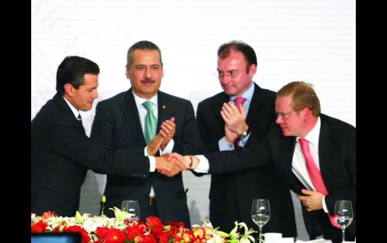 Economía | PRI y PVEM promoverán el tema a partir de mañana Pactan impulso a la reforma energética Propondrán cambios en favor de la exploración y producción de hidrocarburos y la explotación de gas seco Por: EL INFORMADOR 30 de enero de 2013 - 23:09 hs Peña Nieto se reunió con legisladores para acordar el empuje al tema de la reforma energética en el próximo periodo de sesiones. EE / CIUDAD DE MÉXICO (31/ENE/2013).- Los grupos parlamentarios del PRI y PVEM en la Cámara de Diputados resolvieron promover la reforma energética en el siguiente periodo ordinario de sesiones del Congreso. Al concluir la sesión plenaria en la que se confeccionó la agenda legislativa a impulsar entre el próximo 1 de febrero y el 30 de abril, los priístas y pevemistas anticiparon que propondrán reformas que impulsen la exploración y producción de hidrocarburos y la explotación de gas seco o no convencional para lograr la reducción de precios del energético y de la electricidad. Así como proponer la asociación privada en procesos secundarios de la industria petrolera, garantizando la propiedad del petróleo para la nación. Durante la clausura de los trabajos de dos días y frente al presidente Enrique Peña Nieto, Manlio Fabio Beltrones Rivera manifestó “abiertamente y con orgullo”, que los diputados federales priístas y pevemistas se declaraban “listos para poder encabezar las nuevas reformas en México, en este periodo ordinario de sesiones” que iniciará el próximo viernes. Las bancadas del PRI y del PVEM, precisó, respaldan plenamente la propuesta de gobierno del Presidente de México. “El grupo mayor en el Congreso está construyendo y concretando acuerdos que hacen posible los cambios legislativos, las reformas tan necesarias, estratégicamente hablando, que México necesita para volver a recuperar su capacidad de crecimiento económico y resolver, con empleo, la desigualdad, pobreza y hambre que tiene el país”, aseguró. El PRD en el Senado recibió el borrador de la iniciativa en materia energética que Cuauhtémoc Cárdenas coordinó, a través del cual sugiere que la Secretaría de Hacienda no controle las adecuaciones presupuestales de Pemex y sus organismos subsidiarios. El borrador que ya analiza el PRD para incorporarlo a su propuesta de reforma energética detalla que el Consejo de Administración de Petróleos Mexicanos (Pemex) debe avalar las adecuaciones al presupuesto de la paraestatal y a las de los organismos subsidiarios sin que se requiera autorización de Hacienda. “Con la aprobación del Consejo de Administración de Pemex, podrá aumentar su gasto o el de sus organismos subsidiarios con base en sus excedentes de ingresos propios, sin que en ambos casos se requiera de la autorización de Hacienda”, precisa. La dependencia se mantendría al margen de los calendarios de presupuesto y los proyectos de inversión de Pemex. No obstante, propone, la paraestatal debe remitir a la Secretaría informes trimestrales y anuales sobre sus operaciones, “los que serán incorporados en rubros separados a los informes sobre la situación económica, las finanzas públicas y la deuda pública que el Ejecutivo federal presenta con tal periodicidad al Congreso de la Unión, así como a la cuenta pública, respectivamente”. FRASE "El grupo mayor en el congreso está construyendo y concretando acuerdos que hacen posible los cambios legislativos, las reformas tan necesarias, estratégicamente hablando, que México necesita pra volver a recuperar su capacidad de crecimiento económico". Manlio Fabio Beltrones, coordinador del PRI en la cámara de diputados. Temas Reforma Energética Enrique Peña Nieto PRI Una selección de El Economista Recibe las últimas noticias en tu e-mail Todo lo que necesitas saber para comenzar tu día Registrarse implica aceptar los Términos y Condiciones