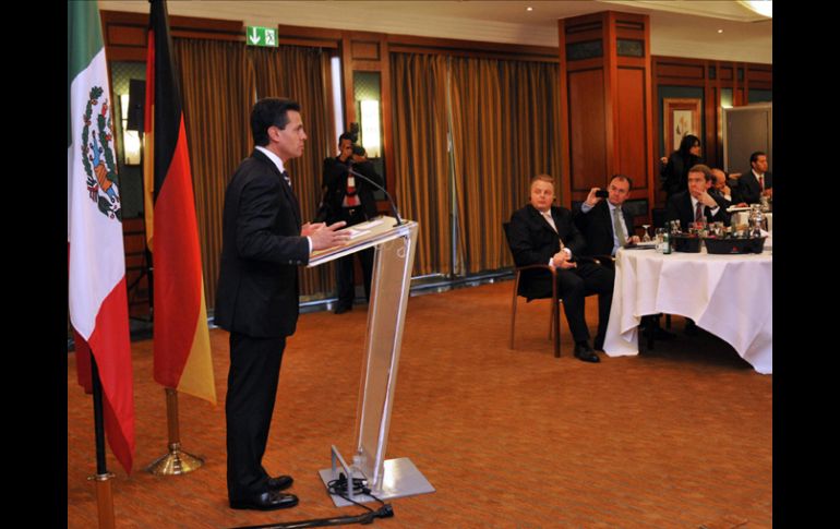 Economía | El Estado no perderá la propiedad de los hidrocarburos o la rectoría económica de Pemex Peña Nieto analiza cambios a la Constitución para abrir Pemex a IP El presidente electo, en el marco de una reunión con empresarios alemanes, dijo que en su momento determinará si presenta ante el Congreso de la Unión una iniciativa que permita la apertura de la petrolera Por: SUN 12 de octubre de 2012 - 09:42 hs BERLÍN, ALEMANIA (12/OCT/2012).- El presidente electo, Enrique Peña Nieto, subrayó que su gobierno apoyará una reforma energética que promueva y facilite la participación de la iniciativa privada en el sector petrolero nacional. En rueda de prensa, en el marco de una reunión con empresarios alemanes -organizado por la Embajada de México, la Federación de Industrias de Alemania y la Iniciativa Económica para América Latina-, dijo que en su momento determinará si presenta ante el Congreso de la Unión una iniciativa que modifique la Constitución para lograr mayor apertura de Petróleos Mexicanos (Pemex) a recursos privados. Indicó que tras la competencia electoral en México hay un ambiente propicio para la generación de acuerdos y que hoy se propone impulsar reformas estructurales que eleven el nivel de competitividad de México en el mundo. Peña Nieto detalló que su gobierno impulsará una reforma energética para favorecer una mayor participación del sector privado en la generación de energías renovables pero también dentro del sector petrolero. Aclaró que ello sin que el Estado pierda la propiedad de los hidrocarburos o la rectoría económica de Pemex. En el encuentro con empresarios agregó: "Pero dando espacio también a una mayor participación del sector privado, teniendo como referente experiencias exitosas de otras naciones que han hecho que sus empresas nacionales de petróleo tengan una mayor capacidad y favorezcan también o esto incida en beneficios que tengan los ciudadanos de nuestro país como ha ocurrido en la experiencia de otros países". El priísta señaló que "dentro de esta oportunidad" está el poder ampliar la capacidad de Pemex para la producción, la exploración y la explotación, además de poder desarrollar una mayor capacidad para la explotación de otras fuentes de energías renovables donde México tiene un gran potencial. "Pero -asentó- el marco legal que hoy tenemos no facilita o no promueve esa participación del sector privado". En un hotel de la zona occidental de Berlín -donde a las afueras se presentó un grupo de 10 personas para manifestarse en rechazo a su visita- Peña Nieto subrayó, a propósito de la reforma laboral que hoy se debate en el Senado, que en México hay un ambiente "óptimo y favorable" para la construcción de acuerdos y para impulsar distintas acciones a fin de que se encuentre en el país mayor desarrollo, crecimiento y una gran oportunidad de ensanchar su relación comercial con el mundo. Dijo que tiene como objetivo ser un gran promotor, desde la Presidencia de la República, del libre comercio, no solo entre México y Alemania, sino que busca convertir a nuestro país en una plataforma para que más naciones puedan encontrar oportunidad de crecimiento en México y desde México para otras regiones de América Latina y América del Norte. Destacó la estabilidad financiera del país. Esta tarde Peña Nieto viajará a Madrid, España. Temas Pemex Economía Mexicana Enrique Peña Nieto Iniciativa Privada Lee También Miércoles de Plaza en La Comer y Fresko: Estas son las ofertas de hoy 22 de octubre ¿Cómo sería el billete de 2000 pesos, según la IA? (FOTO) Charros gana un juego lleno de drama, apagones y lluvia en Mexicali Resultados del Sorteo Mayor 3989 de la Lotería Nacional del 21 de octubre Recibe las últimas noticias en tu e-mail Todo lo que necesitas saber para comenzar tu día Registrarse implica aceptar los Términos y Condiciones