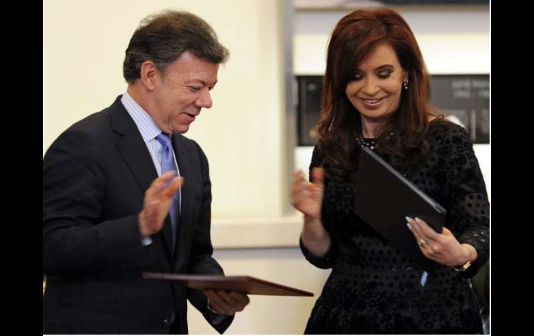 Economía | Instaron a la aplicación de mecanismos conjuntos Santos y Fernández llaman a AL a enfrentar crisis financiera mundial La presidenta argentina consideró que la caída de los mercados y las turbulencias financieras en Europa y EU pueden ser una magnífica oportunidad para la región Por: AFP 18 de agosto de 2011 - 12:59 hs Países de América Latina deben enfrentar de manera conjunta la crisis financiera mundial: Fernández y Santos. AFP / BUENOS AIRES, ARGENTINA (18/AGO/2011).- Los presidentes de Argentina, Cristina Kirchner, y de Colombia, Juan Manuel Santos, llamaron este jueves en Buenos Aires a los países de América latina a enfrentar de manera conjunta la crisis financiera mundial. "Separados somos vulnerables, pero unidos seremos una verdadera potencia", dijo Santos durante un almuerzo que le ofreció la anfitriona Cristina Kirchner en el Museo del Bicentenario, en la Casa Rosada (gobierno), tras firmar acuerdos bilaterales y mantener una reunión privada y otra con las comitivas. El mandatario colombiano, que impulsó medidas para blindar la región de las turbulencias financieras en una reciente reunión de la Unión Suramericana de Naciones (Unasur) en Lima, admitió que la crisis impactará en Latinoamerica e instó a aplicar mecanismos conjuntos "para que afecte lo menos posible" a la región. Al respecto, se pronunció por "crear barreras y amortiguadores contra el huracán", como llamó a la crisis. En la misma sintonía, Kirchner consideró que la caída de los mercados y las turbulencias financieras y económicas en Europa y Estados Unidos "puede ser una magnífica oportunidad para la región". "Tenemos ventaja porque tenemos lo que no tienen los países en crisis: agua, energía y recursos naturales", dijo la mandataria argentina durante su discurso. Ambos presidentes resaltaron además que la visita de Santos a Argentina, la primera de un mandatario colombiano en diez años, significó el "relanzamiento de las relaciones bilaterales". Los ministros de Economía de la Unasur, formado por 12 países de Sudamérica, decidieron el viernes pasado en la capital argentina fortalecer su comercio, coordinar las reservas monetarias y privilegiar el uso de las monedas de la región para enfrentar la crisis internacional. Temas Economía Internacional Cristina Fernández Juan Manuel Santos Recibe las últimas noticias en tu e-mail Todo lo que necesitas saber para comenzar tu día Registrarse implica aceptar los Términos y Condiciones