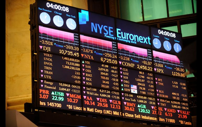 Economía | Durante la jornada se negociaron unos mil 713 millones de títulos Se desploma Dow Jones 3.51 por ciento Se dice que uno de los factores que influyó fue la decisión de la Reserva Federal de sustituir deuda a corto por largo plazo Por: NTX 22 de septiembre de 2011 - 16:25 hs El índice bursátil Dow Jones a la baja en esta jornada. AP / NUEVA YORK, ESTADOS UNIDOS (22/SEP/2011).- El índice Dow Jones de la Bolsa de Valores de Nueva York se desplomó hoy 391.01 puntos (3.51 por ciento) para ubicarse en 10 mil 733.83 unidades. La caída en Wall Street se produjo en medio de una jornada volátil, en la que los principales mercados del mundo registraron fuertes pérdidas ante los temores de una nueva recesión debido a las expectativas negativas de las economías estadunidense y europea. Uno de los factores que influyó en la jornada fue la decisión de la Reserva Federal (Fed), anunciada la víspera, de sustituir deuda a corto por largo plazo, en vez de impulsar un programa de recompra de bonos del Tesoro estadunidense. Durante la jornada se negociaron unos mil 713 millones de títulos, operados por tres mil 104 emisoras, de las cuales 343 subieron de precio, dos mil 724 bajaron y 37 permanecieron sin cambios. Los otros principales indicadores bursátiles locales finalizaron en terreno negativo, al igual que el Dow Jones. El índice compuesto Nasdaq perdió 82.52 puntos (3.25 por ciento) para quedar en dos mil 455.67 unidades, mientras que el Standard & Poor’s de 500 acciones selectas cayó 37.20 puntos (3.19 por ciento) a mil 129.56 unidades. En el mercado energético, el crudo de referencia West Texas Intermediate (WTI), para entregas en noviembre, bajó 5.41 dólares y se cotizó en 80.51 dólares por barril, su nivel más bajo en seis semanas. Temas Indicadores Wall Street Dow Jones Recibe las últimas noticias en tu e-mail Todo lo que necesitas saber para comenzar tu día Registrarse implica aceptar los Términos y Condiciones
