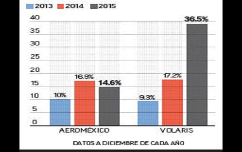 Economía | En 4 años, el número de pasajeros foráneos aumentó 69% Se dispara turismo internacional por dólar caro La divisa estadounidense se encareció 39% desde el último día de 2012 a la fecha, al pasar de 12.87 pesos a 17.92 Por: EL INFORMADOR 13 de enero de 2016 - 04:11 hs Asientos disponibles por kilómetro. Las aerolíneas mexicanas cada vez ofrecen más asientos para el segmento internacional.EL FINANCIERO / CIUDAD DE MÉXICO (13/ENE/2016).- Mientras que algunas actividades económicas padecen el encarecimiento del dólar, el turismo disfruta de los beneficios que trae. Desde el último día de 2012 a la fecha, el dólar se encareció 39 por ciento, al pasar de 12.87 pesos, a 17.92, según datos del Banco de México. A la par, el número de pasajeros aéreos internacionales de las aerolíneas mexicanas alcanzó 8.9 millones viajeros entre enero y noviembre de 2015, un incremento de 69 por ciento en comparación con los 5.2 millones del mismo periodo de 2012. En el mismo periodo, los viajeros con destinos domésticos crecieron 32 por ciento, de acuerdo con datos de la Dirección General de Aeronáutica Civil. “El mayor aumento en el tráfico de pasajeros se debe a que la demanda incrementó por el tipo de cambio, las inversiones en el país y hasta porque hay una relativa menor competencia en el mercado internacional, es decir, hay rutas y destinos en el extranjero menos saturados que en el mercado nacional”, comentó Marco Montañez, analista de Vector Casa de Bolsa. El experto explicó que el dólar caro ha hecho más accesibles los destinos turísticos nacionales, que los internacionales, y por otro lado, se ha incrementado la demanda de pasaje a nivel internacional. En ese sentido, la oferta de Aeroméxico, empresa que atiende a cerca del 62 por ciento de los viajeros extranjeros entre las aerolíneas mexicanas, medida en Asientos por kilómetro disponibles, , alcanzó entre enero y diciembre de 2015 un total de 26 mil 262 millones, desde los 22 mil 915 millones de 2014, un crecimiento de 15 por ciento, mientras que para el doméstico, el incremento fue 6 por ciento. Otra aerolínea que también observó ese efecto fue Volaris, pues de acuerdo con sus reportes mensuales, la aerolínea alcanzó de enero a diciembre del año pasado 4 millones 207 mil asientos por milla disponibles, un crecimiento de 37%, respecto a los 3 millones 81 mil asientos que tenía al cierre del 2014. Temas Turismo Dólar Aerolíneas Una selección de El Financiero Lee También México cae ante Corea del Norte en su debut del Mundial Sub-17 Femenil México vs Corea del Sur: EN VIVO, dónde ver el partido por el Mundial Sub-17 femenil México, el número uno de Concacaf según ranking de la FIFA Peso REPUNTA en cierre semanal frente al dólar tras pérdidas Recibe las últimas noticias en tu e-mail Todo lo que necesitas saber para comenzar tu día Registrarse implica aceptar los Términos y Condiciones