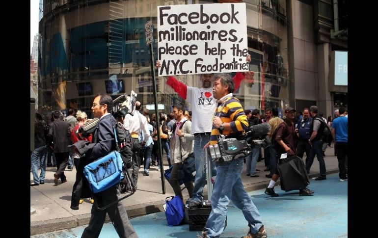 Economía | Aunque al inicio las acciones repuntaron 11%, retrocedieron a la cotización inicial Se opaca el brillo de Facebook ante inversionistas Aunque al inicio las acciones repuntaron 11%, retrocedieron a la cotización inicial Por: REUTERS 18 de mayo de 2012 - 12:30 hs SAN FRANCISCO, ESTADOS UNIDOS (18/MAY/2012).- Las acciones de Facebook subían menos de lo esperado en su primer día de negociaciones, en un debut que se demoró levemente por problemas técnicos derivados de los enormes volúmenes de órdenes sobre los títulos de la red social más grande del mundo. Las acciones subían un ocho por ciento en las transacciones después del mediodía en el Nasdaq, después de abrir con un alza de un 11 por ciento y retroceder rápidamente al nivel de su oferta pública inicial de 38 dólares (525 pesos mexicanos) por título. Las ganancias estaban por debajo de las expectativas que hablaban incluso de una subida de hasta un 50 por ciento. "Tenemos a algunas personas no muy contentas allá afuera", dijo Wayne Kaufman, estratega jefe de mercados de John Thomas Financial, un corredora minorista de Wall Street. "Tenían esperanzas de que Facebook estuviera considerablemente mejor. Apuesto a que hay muchos decepcionados en el mercado". Ante un clamoroso aplauso de los empleados, el presidente ejecutivo de Facebook, Mark Zuckerberg, -flanqueado por la presidenta de operaciones Sheryl Sandberg y el presidente ejecutivo del Nasdaq Robert Greifeld- tocó el viernes la campana para dar inicio a las operaciones en la sede de la compañía en Sillicon Valley a las 6.30 a.m. hora de la costa pacífico. El fundador multimillonario de 28 años abrazó y chocó su mano con Sandberg y otros empleados en celebración tras apretar el botón remoto. El área en las afueras de las oficinas de Facebook, en el número 1 de Hacker Way estaba abarrotada con una multitud de fotógrafos, más de 12 camiones de televisión y un helicóptero de noticias sobrevolando el sector. "Un avance de un 15 a un 20 por ciento está dentro del margen de las posibilidades", dijo Tim Loughran, profesor de Finanzas de la Universidad de Notre Dame. "Dado que ya subieron su rango de OPI e incrementaron el tamaño, eso ya es optimista para empezar", añadió. Algunos prevén que las acciones suban el viernes un 30 por ciento o más, a pesar de las constantes preocupaciones respecto al potencial de Facebook de generar ingresos a largo plazo. Una estimación promedio de analista de Morningstar ubicó al precio de cierre de las acciones de Facebook del viernes en 50 dólares (más de 690 pesos). Con un valor de mercado de 104 mil millones de dólares (unos 1.4 billones de pesos mexicanos), Facebook se convirtió en la primera compañía estadounidense en debutar por encima de los 100 mil millones de dólares (1.3 billones de pesos mexicanos). La valoración es mayor que la de Starbucks Corp y Hewlett-Packard juntas. La OPI, que se espera cree más de mil millonarios "en papel" dentro de la compañía, ha recibido una amplia cobertura de los medios y ha generado esperanzas de un auge en las ventas de todo tipo de productos cerca de la sede de la empresa en el área de la Bahía de San Francisco, desde bienes raíces hasta automóviles. Los empleados de Facebook celebraron el evento con una "hackathon" -un encuentro de programadores que trabajan en proyectos paralelos que a veces se convierten en aplicaciones importantes- en la sede de la compañía en Menlo Park, California, que comenzó el jueves por la noche. Fundada el 2004 en un dormitorio de Harvard, Facebook ha crecido hasta ser la red social dominante del mundo con 900 millones de usuarios. A 38 dólares por acción, Facebook cotizaría a más de 100 veces sus ganancias históricas en comparación a las 14 veces de Apple Inc y a las 19 veces de Google Inc. Temas Empresas Wall Street Facebook Lee También La empresa familiar: motor económico y emocional Factores que aumentan la incidencia del burnout en México Bitcoin y el oro atraen a los inversores ante la debilidad del dólar estadounidense Wall Street cierra en rojo, con retroceso de S&P 500 y el Nasdaq Recibe las últimas noticias en tu e-mail Todo lo que necesitas saber para comenzar tu día Registrarse implica aceptar los Términos y Condiciones