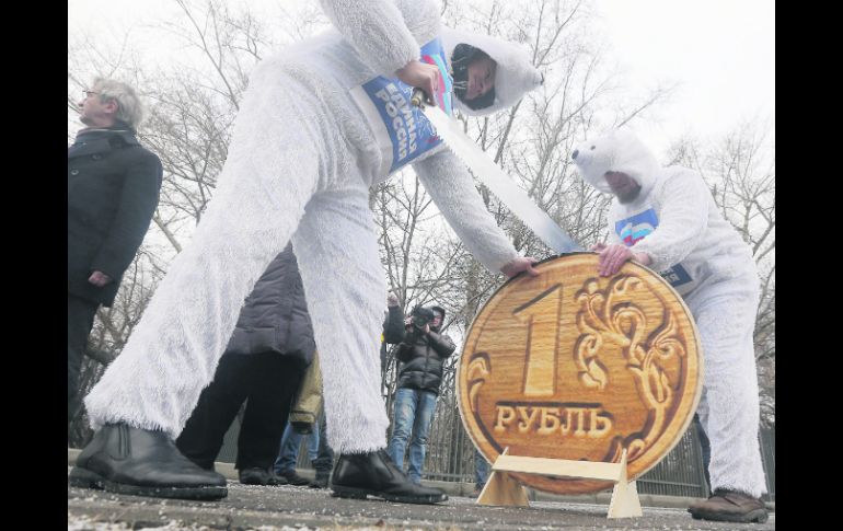 Economía | Mercados. Se asoma a la recesión Un rublo débil obliga a Rusia a rescatar un banco El banco central anuncia el rescate del Trust Bank, un banco de mediano tamaño con aproximadamente 500 millones de dólares para evitar su quiebra Por: EL INFORMADOR 23 de diciembre de 2014 - 07:39 hs Molestia. La caída del rublo ha provocado manifestaciones contra el Gobierno. EFE / K. Kudryavtsev MOSCÚ, RUSIA (23/DIC/2014).- La economía rusa se asoma al precipicio. El banco central anunció el rescate del Trust Bank, un banco de mediano tamaño con 30 mil millones de rublos (unos 500 millones de dólares) con el objetivo de evitar su quiebra. Los fondos que le permitirán mantener sus operaciones de manera normal. Los analistas ven en esta medida una señal de que la devaluación del rublo, en medio de una caída de los precios del petróleo, está causando problemas al sistema financiero. El banco también será puesto bajo supervisión hasta que se encuentre un inversionista dispuesto a asumir sus operaciones. Sin embargo, los principales bancos rusos informaron que no están interesados en la adquisición del Trust Bank, una de las 30 instituciones financieras más importantes de Rusia, con activos por unos cinco mil millones de dólares. La caída de los precios del petróleo es una de las razones que explican la esperada caída en recesión de la economía rusa el próximo año. La moneda rusa se ha debilitado debido a la baja en los precios del petróleo, que actualmente se encuentra por abajo de los 60 dólares por barril después de que en junio rondaba los 107 dólares, así como por las sanciones que Occidente impuso a Rusia por su participación en la crisis ucraniana y la anexión de Crimea. La baja del crudo impulsará la economía Los precios del petróleo continuarán bajos, lo cual dará un “impulso” a la economía mundial del orden de 0.3% a 0.7% en 2015, estimó el Fondo Monetario Internacional ( FMI). “Los mercados de contratos a futuro sugieren que los precios del crudo subirán pero permanecerán por debajo de sus niveles de los últimos años”, según una publicación vía blog del FMI firmada entre otros por el economista jefe del organismo, Olivier Blanchard, que señala igualmente el alto grado de “incertidumbre” que rodea a los precios. “Las presiones sobre las divisas se vieron circunscritas hasta ahora a algunos países exportadores como Rusia, Nigeria y Venezuela”, señala el FMI. Las cotizaciones del petróleo perdieron alrededor de 50% en las últimas semanas. Temas Bancos Economía Internacional Rusia Lee También Peso CORONA su ventaja frente al dólar en el cierre de la semana El “malabarista” de la Casa Blanca El Oviedo recibe a los Periquitos Futbol hoy 17 de octubre de 2025: ¿Dónde ver los partidos en vivo? Recibe las últimas noticias en tu e-mail Todo lo que necesitas saber para comenzar tu día Registrarse implica aceptar los Términos y Condiciones