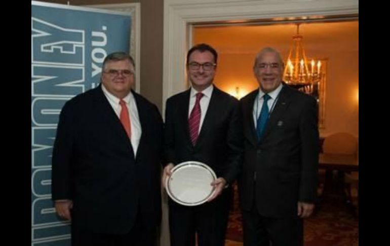 Economía | Reconoce que el premio le pertenece a los involucrados en la transformación del país Videgaray recibe premio como mejor ministro de finanzas Reconoce que el premio le pertenece a todos los involucrados en la transformación del país Por: SUN 10 de octubre de 2014 - 21:28 hs Luis Videgaray recibe el reconocimiento de la revista 'EuroMoney' por la implementación de las reformas. TWITTER / @SHCP_mx WASHINGTON, ESTADOS UNIDOS (10/OCT/2014).- El secretario de Hacienda y Crédito Público, Luis Videgaray Caso, recibió el reconocimiento como mejor ministro de finanzas en el mundo 2014 por parte de la revista especializada en finanzas “EuroMoney”. En la ceremonia, donde estuvo acompañado de su esposa y sus tres hijos, así como del gobernador del Banco de México, Agustín Carstens, y el secretario ejecutivo de la Organización para la Cooperación y el Desarrollo Económicos ( OCDE), José Ángel Gurría, el funcionario reconoció que este premio le pertenece a todas las personas involucradas en el proceso de transformación del país. Hace dos semanas, la revista dio a conocer el reconocimiento al titular de Hacienda por la implementación de las reformas estructurales en el país. Ahora que tenemos estas reformas tenemos tres acciones principales: implementar, implementar e implementar. Es en esta implementación en lo que estamos enfocados ahora mismo, dijo Videgaray Caso durante la ceremonia. Recordó que reformas como la energética ya están en proceso y con una agenda específica, con el fin de lograr que los cambios se den en los plazos que se establecieron. Estos procesos son laboriosos porque involucran cambios en la Constitución, cambios en las vidas de las personas. Mismo caso para la reforma financiera, la reforma de telecomunicaciones y para algunas de las reformas ya aprobadas. Hay un período de transición para ellas, así que vamos a trabajar. Los retos son muchos, algunos vienen desde el interior y algunos del exterior pero estamos trabajando en estos procesos para conseguir los resultados, dijo el funcionario. Por su parte, el editor de la revista “EuroMoney”, Clive Horwood, resaltó la consecución de las reformas y afirmó que éstas harán un diferencial en México y su economía. A menudo México ha proveído y tenido un crecimiento en la producción pero estas reformas se enfocan hacia un crecimiento en la productividad que logre una reforma para una economía sustentable y de progreso”, dijo el responsable de la revista. Temas Economía Mexicana SHCP Luis Videgaray Lee También El Tricolor entrenó en Guadalajara tras la humillación ante Colombia Resultados del Sorteo Zodiaco 1722 de la Lotería Nacional del 12 de octubre México Sub-20 regresa al país tras eliminación ante Argentina Selección Mexicana | James Rodríguez sobre el Tricolor: "Hablan mucho" Recibe las últimas noticias en tu e-mail Todo lo que necesitas saber para comenzar tu día Registrarse implica aceptar los Términos y Condiciones
