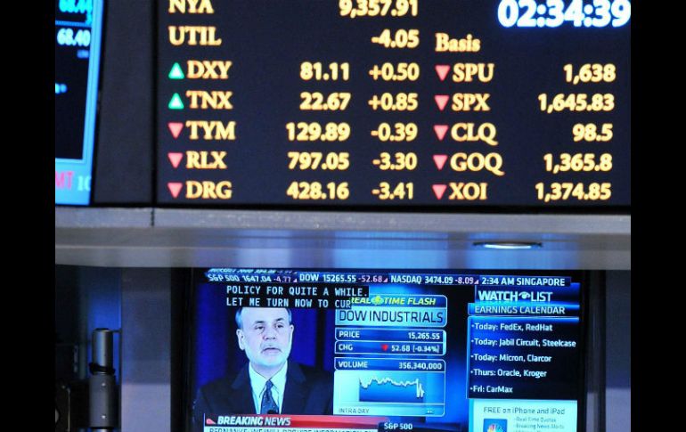 Economía | El Dow Jones resta 206.04 puntos Wall Street cierra con descensos El Dow Jones desciende hasta las 15 mil 112.19 unidades Por: EFE 19 de junio de 2013 - 14:37 hs Wall Street cierra con fuertes descensos después de que se anunciara que podría reducirse su programa de estímulo. EFE / NUEVA YORK, ESTADOS UNIDOS (19/JUN/2013).- Wall Street cerró hoy con fuertes descensos y el Dow Jones de Industriales, su principal indicador, perdió el 1.35 por ciento después de que la Reserva Federal de Estados Unidos anunciase que podría reducir su programa de estímulo a finales de año. Ese índice, que agrupa a treinta de las mayores empresas cotizadas de Estados Unidos, restó 206.04 puntos hasta quedar en las 15 mil 112.19 unidades, el selectivo S&P 500 perdió el 1.39 por ciento (-22.88 puntos) hasta mil 628.93 y el índice compuesto del mercado Nasdaq el 1.12 por ciento (-38.98 puntos) hasta tres mil 443.2. El parqué neoyorquino reaccionó con una fuerte tendencia bajista a las palabras del presidente de la Fed, Ben Bernanke, quien aseguró que si la economía evoluciona como se prevé podría iniciarse la "moderación" del volumen de compra de bonos "a finales del año" para concluir de manera progresiva "a mediados de 2014". En todo caso, el banco central decidió mantener por ahora sin cambios sus medidas de estímulo y, por otro lado, mejoró sus previsiones económicas al vaticinar que la tasa del desempleo podría descender al 6.5 por ciento en 2014, un año antes de lo previsto antes. Todos y cada uno de los componentes del Dow Jones cerraron la jornada en terreno negativo, liderados por las operadoras Verizon (-2.91 por ciento) y AT&T (-2.54 por ciento), la aseguradora Travelers (-2.15 por ciento) y el grupo industrial United Technologies (-2.07 por ciento), seguidas por otras casi veinte compañías con descensos superiores al uno por ciento. Fuera de ese índice destacó el avance del 1.07 por ciento de la empresa de mensajería FedEx tras anunciar que cerró su año fiscal 2013 con un beneficio neto de mil 560 millones de dólares, un 23 por ciento menos que en el ejercicio pasado. En otros mercados, el petróleo de Texas bajó hasta los 98.24 dólares por barril, mientras que el oro ascendió a mil 374 dólares la onza. Por otra parte, el dólar bajaba frente al euro (que se cambiaba por 1.3293 dólares) y la rentabilidad de la deuda pública estadounidense a diez años subía con fuerza, hasta el 2.33 por ciento. Temas Indicadores Wall Street Dow Jones S&P Lee También La Bolsa Mexicana inicia semana con ligera caída Peso REPUNTA en cierre semanal frente al dólar tras pérdidas El oro y la plata alcanzan precios históricos Bolsa Mexicana gana y suma su tercera alza en la semana Recibe las últimas noticias en tu e-mail Todo lo que necesitas saber para comenzar tu día Registrarse implica aceptar los Términos y Condiciones