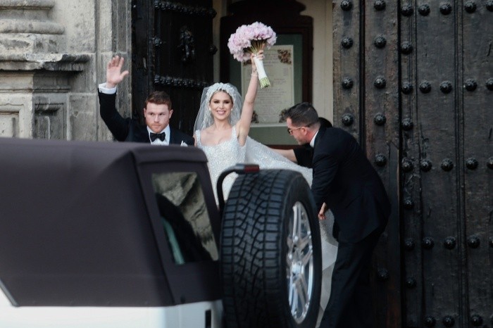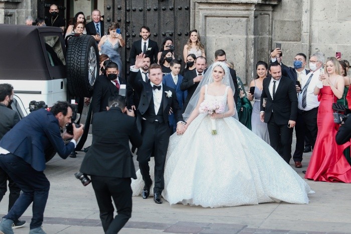 En una explanada resguardada con vallas y vigilada por policías y agentes de Protección Civil para garantizar la seguridad de los invitados, el boxeador Saúl “Canelo” Álvarez contrajo matrimonio religioso con la modelo Fernanda Gómez en la Catedral de Guadalajara. Las medidas de protección se instalaron dos horas antes de que iniciara el evento, que reunió a decenas de celebridades en el Centro tapatío.La Dirección de Movilidad y Transporte del Ayuntamiento expidió un permiso extraordinario para que los asistentes estacionaran sus automóviles en el mercado Corona. Tras la ceremonia religiosa, donde se limitó la cifra de invitados debido a la pandemia de COVID-19, la recepción se llevó a cabo en los jardines del rancho las Reynas, ubicados en el Camino Antiguo a San Isidro Mazatepec. El código de vestimenta solicitó que las mujeres asistieran de largo y evitaran indumentarias blancas; a los hombres se les pidió usar traje oscuro y corbata. No hubo acceso a niños. Cientos de tapatíos se aglomeraron ante el arribo de los novios. Algunos de los famosos que asistieron a la misa fueron J Balvin, Prince Royce y Jaime Camil. La semana pasada se realizó la boda civil en Punta Mita, en Nayarit.Saúl “Canelo” Álvarez y la modelo Fernanda Gómez dijeron “sí, acepto” por la iglesia, una semana después de la celebración de la ceremonia civil acontecida en Nayarit; la misa se realizó en la Catedral de Guadalajara. El recinto sacro en el centro tapatío tuvo una tarde concurrida, desde horas antes de la ceremonia nupcial el templo fue cercado por vallas por parte de la policía local para resguardar el ingreso, apoyados por un operativo con seguridad privada. Pese al clima caluroso la gente se congregó alrededor del límite cercado para alcanzar a ver a los novios y los invitados.Además del paseo artístico que propone el Festival de Mayo, en el centro histórico de la ciudad hubo atractivos extra a propósito de la boda, como una botarga caracterizada como el célebre boxeador. La espera de los curiosos que se agolparon sobre la avenida Hidalgo, en el cruce con el andador peatonal para ver a su ídolo fue compensada cuando éste saludó a su público. Fue allí donde se delimitó la valla de seguridad y por donde los asistentes desfilaron vestidos de gala, con un dress code de vestido largo (no blanco) para las damas y traje y corbata para los varones. Amigos, familiares y socios de la pareja se dieron cita desde antes de las 19:00 horas, como Prince Royce. Alguien que arribó de manera tardía fue el cantante J Balvin (acompañado de Valentina Ferrer, modelo argentina y con quien sale desde 2018). Durante la llegada de los invitados se escucharon comentarios de la gente a pie de calle, entre la jocosidad, el ánimo de ver a su ídolo y la crítica por el espacio público: “No veo correcto que hayan tapado la calle”, “¿A qué hora llega ‘Canelo’?”, “¿No invitaron al Perro Bermúdez?”. Para capturar el momento en modo paparazzi, las personas tomaron fotografías, videos, hicieron streaming en redes sociales y videollamadas. Entre los curiosos para ver a los invitados pasar hubo gente en silla de ruedas, jóvenes embarazadas y adultos mayores, quienes aguantaron incluso los momentos de tensión cuando el boxeador llegó: la gente rodeo el vehículo que a vuelta de rueda entró por el andador. Cuando cesó el flujo de asistentes la gente comenzó a gritar, y la porra "¡Canelo, Canelo!" cobró fuerza, pues fue cuando el deportista jalisciense descendió de su vehículo de lujo para ingresar a la catedral. Cerca de las 19:15 horas la novia bajó de la camioneta para recorrer el pasillo hasta el altar. Una hora después, la ceremonia terminó. A la salida de la catedral se congregaron los asistentes a la misa, felicitando a la nueva pareja. Desde uno de los altavoces usados minutos antes en un mitin político se escuchó la petición de "¡Beso, beso!”, previo a que la pareja subiera a la camioneta de lujo para encaminarse a la fiesta, en el rancho las Reynas. Una fuente de Seitrack confirmó a este medio que la boda fue amenizada por las agrupaciones: Maná, Los Ángeles Azules y la Banda El Recodo. Trascendió que el boxeador pagó 150 dólares por reservar la fecha de la iglesia, pero la suma total de la misa más la fiesta habría ascendido a más de medio millón de dólares.Entre vallas, seguridad pública, cierres viales en los alrededores y una manifestación, Saúl “Canelo” Álvarez y su esposa, Fernanda Gómez, llegaron a la Catedral de Guadalajara para contraer nupcias religiosas. Vestidos largos y trajes desfilaron por la explanada del templo, a la vista de cientos de ciudadanos que se dieron cita para poder ver al boxeador y a otras celebridades.Mientras que, por los cierres viales, los autos caminaban a vuelta de rueda en las calles del primer cuadro de Guadalajara.Juan Carlos Cristóbal fue una de las personas que llegaron desde temprano a la iglesia para atestiguar el evento.Con paraguas en una mano para cubrirse del Sol y una botella de agua en la otra, llegó con su esposa desde las dos de la tarde a la Catedral, pues sabía desde antes que ayer se casaba el boxeador.“Llegué antes de que pusieran las vallas. Desde hace unos días sabíamos que se iba a casar y estamos esperando ver personalidades”, compartió.Cristóbal afirmó que es admirador del boxeador desde que éste inició su carrera. “Me gusta mucho como pelea”.En el lugar también desfilaron artistas, quienes provocaron los gritos de cientos de fanáticas que se encontraban entre los asistentes y quienes se amotinaron detrás de las vallas, olvidando la sana distancia y la pandemia de COVID-19.“Íbamos pasando y nos tocó la buena suerte de ver que (el “Canelo”) se iba a casar. No sabía pero preguntamos y nos quedamos. Esperamos a que se arrime un poquito o, aunque sea, saludarlo de lejitos”, comentó Denia Virgen, otra de las asistentes al evento.Au