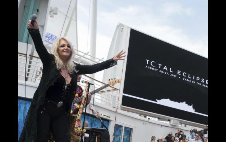 CIUDAD DE MÉXICO (21/AGO/2017).- Tal como lo había declarado, la cantante Bonnie Tyler interpretó su famoso tema "Total Eclipse of the Heart" en el día del eclipse solar que pudo verse en Estados Unidos.Bonnie cantó el famoso tema, que fue un hit en 1983, a bordo de un crucero de Royal Caribbean mientras se oscurecía.Tyler estuvo acompañada por la banda DNCE en el teatro al aire libre del barco Oasis of the Seas. El crucero viajaba por el Caribe hacia la isla de St. Maarten cuando se pudo apreciar el eclipse.El tema tuvo que adaptarse a una versión de dos minutos y 40 segundos para cubrir la total duración del eclipse.