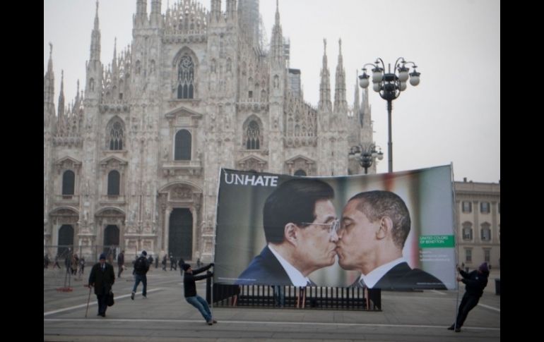 Entretenimiento | Trucos de imágenes unen a personajes tan polémicos como Barack Obama y Hugo Chávez Campaña publicitaria hace que líderes mundiales 'se besen' Con trucos de imágenes unen a personajes tan polémicos como Barack Obama y Hugo Chávez Por: SUN 16 de noviembre de 2011 - 09:33 hs CIUDAD DE MÉXICO (16/NOV/2011).- La empresa Benetton vuelve a la carga ahora con una campaña publicitaria en la que logra que líderes del mundo tan antagónicos como el presidente estadounidense Barack Obama y su homólogo venezolano, Hugo Chávez, se den un beso, o que hasta el Papa Benedicto XVI y el imán egipcio, Ahmed Mohamed el-Tayeb hagan lo mismo. En todo el mundo comenzó a generar polémica la nueva estrategia publicitaria de la empresa italiana, que no es la primera vez en que es objeto de críticas y señalamientos de sectores sociales en todo el planeta, primero al mostrar gente desnuda y luego por echar mano de gente visiblemente enferma o de difundir el beso de un sacerdote y una monja. Esta vez el grupo italiano de moda lanzó una campaña llamada ‘”Unhate” (Sin odio) y pretende ser una invitación "a los líderes y habitantes del mundo a combatir la cultura del odio", según un comunicado de la empresa. "Si el amor global sigue siendo una utopía compartida, la invitación a no odiar, a combatir la cultura del odio, representa un objetivo ambicioso pero realista", afirma Alessandro Benetton, vicepresidente ejecutivo del grupo textil. En otros carteles de la campaña también se pueden observar besándose a personajes como la canciller alemana, Angela Merkel, y el presidente francés, Nicolas Sarkozy; el primer ministro israelí, Benjamin Netanyahu, y el presidente de la Autoridad Nacional Palestina, Mahmud Abbas; o los dirigentes de Corea del Norte y Corea del Sur, Kim Jong-il, y Lee Myung-bak. En su página electrónica difunden un video que será utilizado en su campaña, en la que se muestran expresiones de cariño entre personas del mismo sexo y de distintas razas, en una expresión de tolerancia. También colocaron un ‘Kiss Wall' (muro de besos) en los que la gente ya comenzó a colocar besos con sus seres queridos, e incluso aplicaciones que pueden ser descargadas en los distintos dispositivos electrónicos populares en el mundo. Los besos entre mandatarios sólo se dan en carteles que serán colocados en establecimientos y exteriores. Temas Curiosidades y absurdos Publicidad Política internacional Lee También El audio de la soberbia Ni para la foto hubo acuerdo Claudia Año II: es la comunicación “El diablo fuma”, una dura mirada al abandono infantil en el país Recibe las últimas noticias en tu e-mail Todo lo que necesitas saber para comenzar tu día Registrarse implica aceptar los Términos y Condiciones