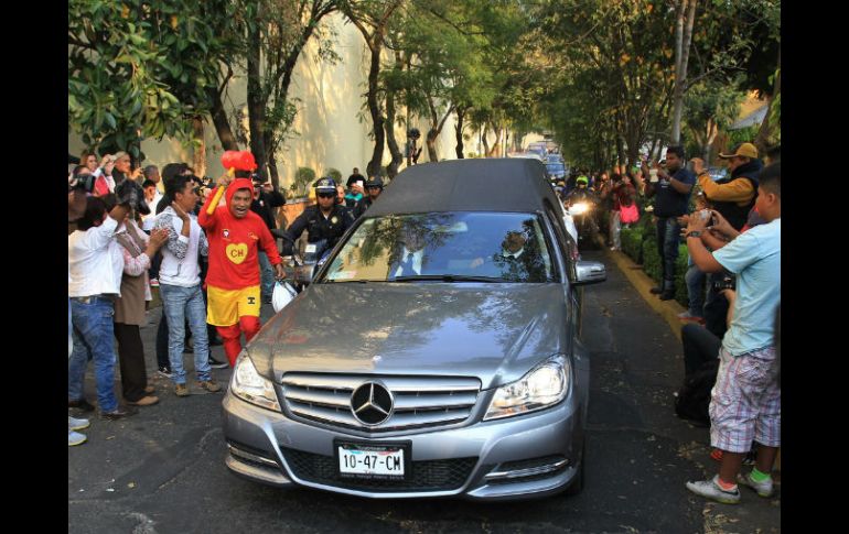 Entretenimiento | Tendrá homenaje en el Estadio Azteca Cortejo multitudinario acompaña a 'Chespirito' Tanto en su casa en Cancún como en el trayecto al DF, el público mostrós sus respetos al comediante Por: EL INFORMADOR 30 de noviembre de 2014 - 03:55 hs Fanáticos hacen valla a la carroza fúnebre que traslada los restos de Roberto Gómez Bolaños a las instalaciones de Televisa. EFE / M. Guzmán CIUDAD DE MÉXICO (30/NOV/2014).- Los restos mortales del comediante Roberto Gómez Bolaños llegaron a la Ciudad de México acompañados por una multitud. Ahí, la empresa para la que trabajó toda su vida ( Televisa) le ofreció una misa privada e iniciaron los homenajes a “Chespirito”. El comediante mexicano, de 85 años, murió el viernes pasado en su casa en Cancún. Ayer por la mañana, unos 100 turistas despidieron al cortejo fúnebre a la salida de su vivienda, algunos inmortalizando el momento tomándose fotos con la gorra de “El Chavo del Ocho”, su personaje más famoso. En un vuelo privado, el féretro aterrizó en la ciudad de Toluca y de ahí fue trasladado a la Ciudad de México custodiado por la Policía Federal. El ídolo televisivo en América Latina fue recibido por cientos de fans y empezó a recibir agradecimientos que culminarán hoy con un homenaje en el Estadio Azteca. Temas Farándula Decesos de celebridades Roberto Gómez Bolaños Chespirito Lee También Fede Dorcaz es despedido con emotivo mensaje de su novia Mariana Ávila Fallece John Lodge, bajista de The Moody Blues ¿Quién es la máscara?: Fecha de regreso y rostros conocidos que se verán en el show Belinda denuncia a Lupillo Rivera Recibe las últimas noticias en tu e-mail Todo lo que necesitas saber para comenzar tu día Registrarse implica aceptar los Términos y Condiciones