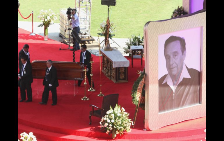 Entretenimiento | Al centro de la cancha se colocó una carpa a donde fue llevado el féretro del actor Despedida a 'Chespirito' inicia en el Estadio Azteca Al centro de la cancha se colocó una carpa a donde fue llevado el féretro del actor Por: SUN 30 de noviembre de 2014 - 13:52 hs Aún no se sabe si algún miembro de la familia del comediante emitirá algunas palabras. NTX / J. Espinosa CIUDAD DE MÉXICO (30/NOV/2014).- Con la colocación de flores blancas en una parte de la cancha, inició esta tarde en el Estadio Azteca el homenaje póstumo en honor de Roberto Gómez Bolaños "Chespirito". Aún no se sabe si algún miembro de la familia del comediante emitirá algunas palabras. Lo que sí se programó fue una misa de cuerpo presente que iniciará a las 15 horas. Al centro de la cancha en el recinto se colocó una carpa a donde fue llevado el féretro del actor. Florinda Meza, pareja del actor, y los hijos de éste participan en la ceremonia, a la que acudieron miles de personas -muchas de ellas disfrazadas como los personajes creados por Gómez Bolaños. Fue Florinda la primera en colocar las flores blancas en un punto de la cancha, a la que siguieron familiares de Gómez Bolaños y algunas personas del público. Fallecido el pasado viernes en Cancún, sus restos fueron trasladados a Toluca y de ahí al Distrito Federal. En Televisa San Ángel se realizó una ceremonia privada en su honor. Su deceso causó gran impacto en Sudamérica, donde sus programas seguían transmitiéndose. Temas Farándula Decesos actores Homenaje Roberto Gómez Bolaños Chespirito Estadio Azteca Lee También KIVA Inversión inmobiliaria integral presenta Atriva, esencia viva Presentan Plan México ante empresarios del Foro Mundial Muere Miguel Ángel Russo, entrenador de Boca Juniors La Granja VIP 2025: Estos son los participantes del nuevo reality Recibe las últimas noticias en tu e-mail Todo lo que necesitas saber para comenzar tu día Registrarse implica aceptar los Términos y Condiciones