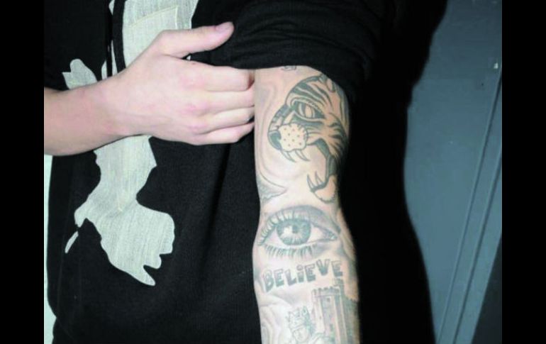 Las imágenes se realizaron el pasado 23 de enero cuando el intérprete fue arrestado por conducir bajo los efectos del alcohol. En las fotografías de los tatuajes se puede observar el rostro de Cristo, la corona de rey, una clave de sol, una flor, un pájaro, un tigre, el escudo de su equipo de hockey, un salmo y la palabra “Believe”.